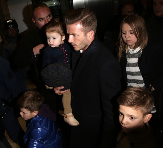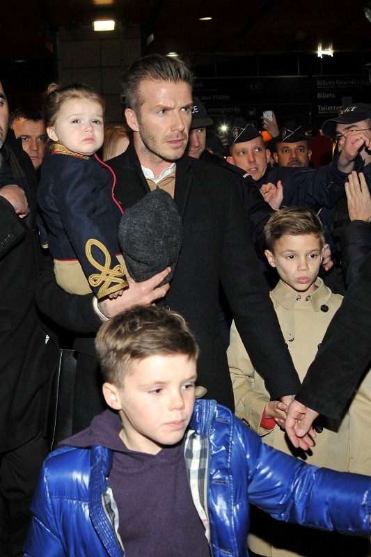 It's H7 in Paris with the family, arriving by Eurostar, in town presumably as David Beckham begins training with the team while Posh tries to get some facetime with Karl Lagerfeld...and Fashion Week? It starts a week today. But what is the protocol. Victoria is a proper designer now before she is a professional shopper. Can she go front row? It's not done, is it? She'll have to creep it from her laptop like us?