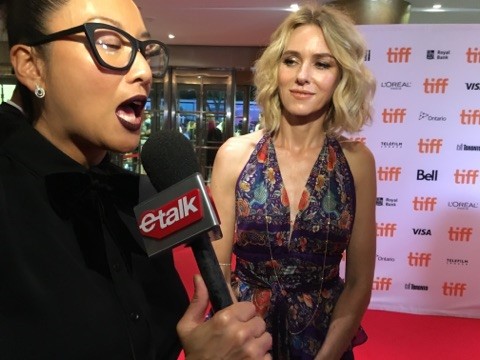 Naomi also appeared charmed by the question, and told Lainey she was thankful she was not on-set to witness to see Liev-as-Chuck take those hits. Later, when we asked Liev to objectively rank Naomi's performance when comparing her to the other two wives, he said he "couldn't be objective" and raved about how talented Naomi is, and how he's thankful she was able to be funny in this movie. And she is. It's a better part, and a better accent, than St. Vincent, too... which earned her a SAG Award nomination.