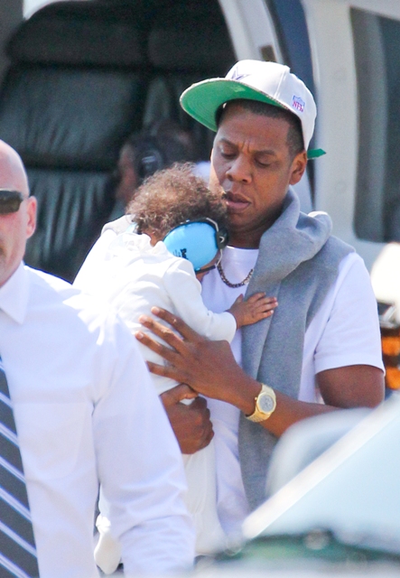 Apple Martin wore pink ones. But how could there be any other colour but blue for the Blue Ivy Carter? The Blue Ivy Carter was carried by her father in New York today. He was protecting her ears for a helicopter ride. Hamptons? The Carters have been spending a lot of time there this summer, renting a home for a reported $400K a month. And everyone was all judgy about this like that’s a lot of money.