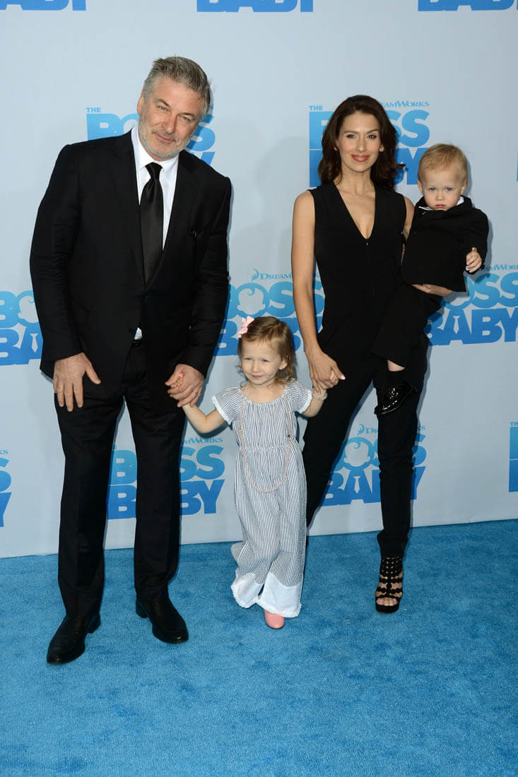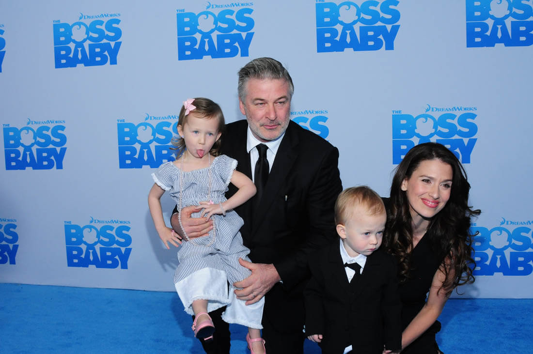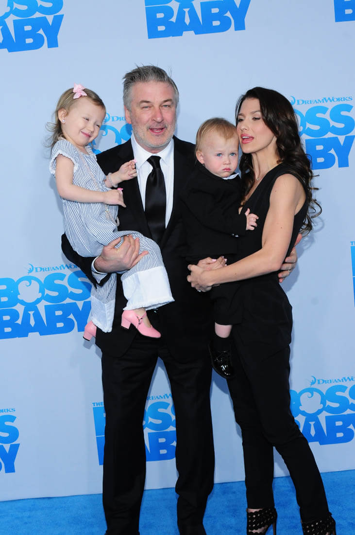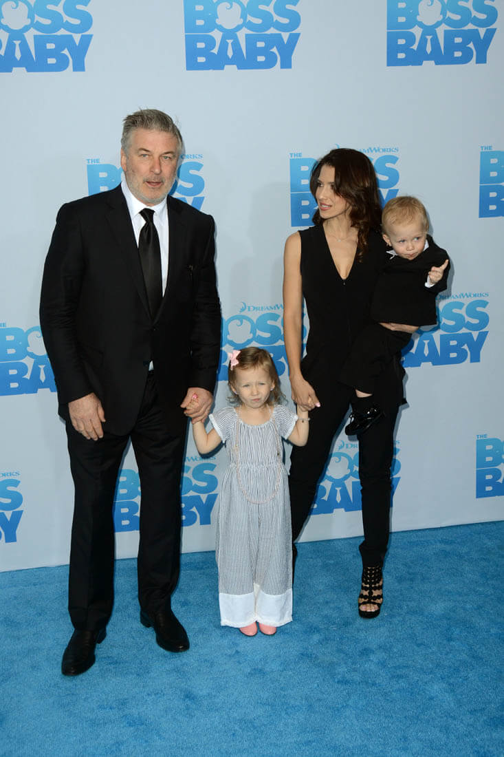Attached - Alec Baldwin at the New York premiere of Boss Baby last week with wife Hilaria and two of their children.