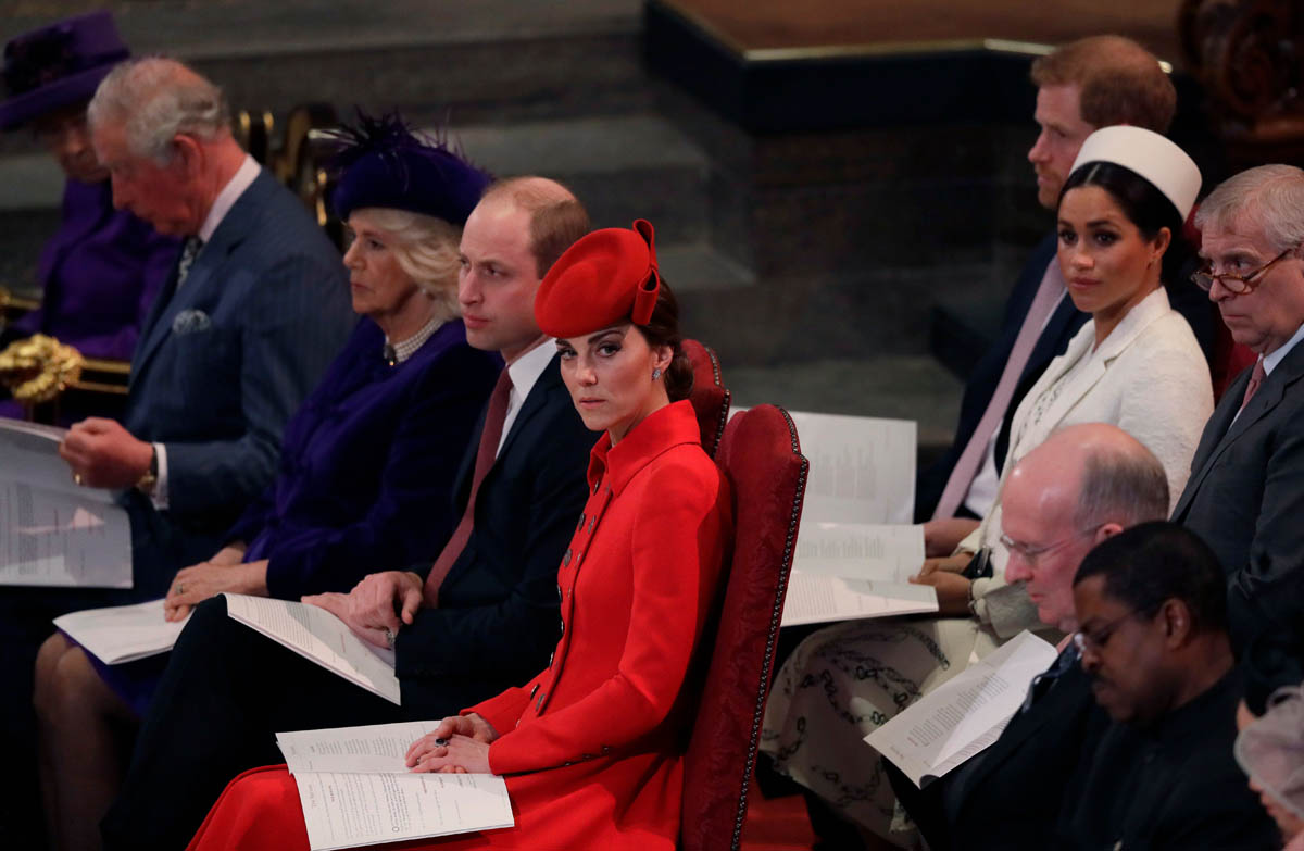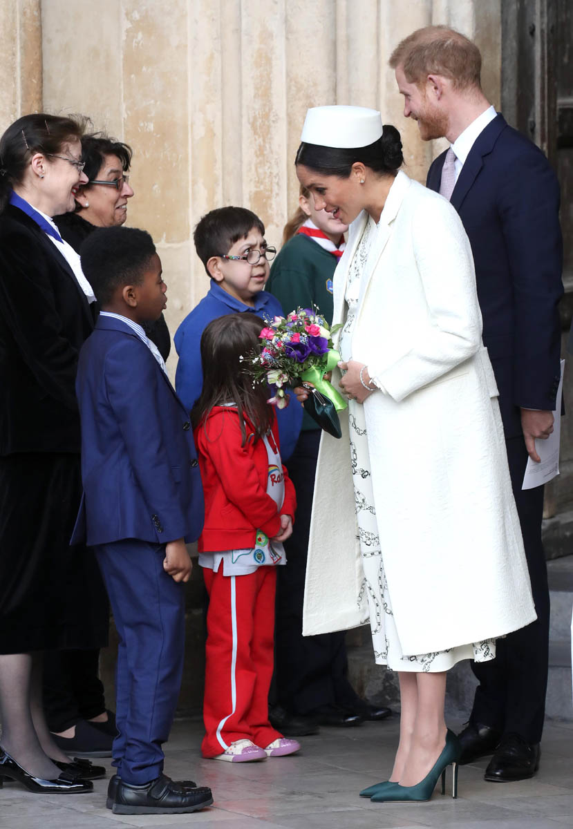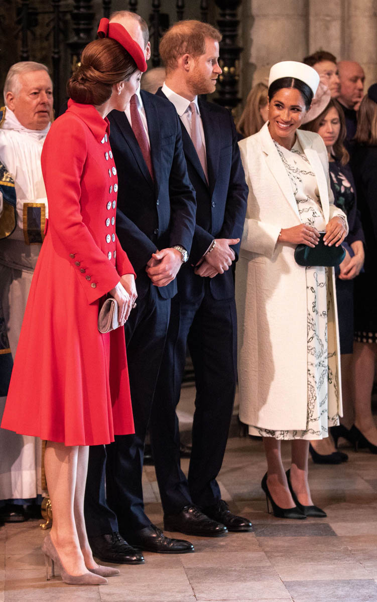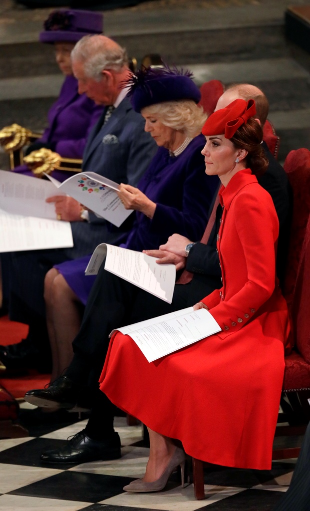 After visiting Canada House today to celebrate Commonwealth Day, Prince Harry and Meghan Markle joined the Queen and other senior royals, including Prince Charles and Camilla and Prince William and Catherine, at Westminster Abbey for Commonwealth Day service. As you can see, Kate and Meghan greeted each other warmly and were seen speaking to each other, big smiles on their faces, while awaiting Her Majesty’s arrival, which must be a disappointment to the British tabloids, that they can’t continue their “feud” story between the duchesses. William and Harry seemed same-same around each other too, the way they always are, despite the fact that their households will reportedly be separated soon – a natural move considering the differences in their positions. And Charles and Meghan were seen sharing an affectionate moment…