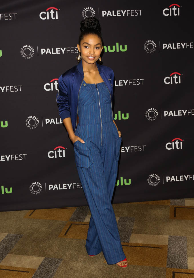 I know. I KNOW. It seems impossible. But somehow Black-ish managed it. Which is why it’s one of the best shows on television right now. And also one of the most stylish? I mean I’m always watching what Tracee Ellis Ross is wearing but Yara Shahidi, at 16, is an emerging fashion star. Her clothes on the show are fun and edgy and accessible. There was a top she was wearing a couple of months ago with cats all over it that I found at H&M for $29! Click here to see. Come on. How cute is that? And the jumpsuit with the bomber she’s wearing here? And check her out at Kids’ Choice this weekend: