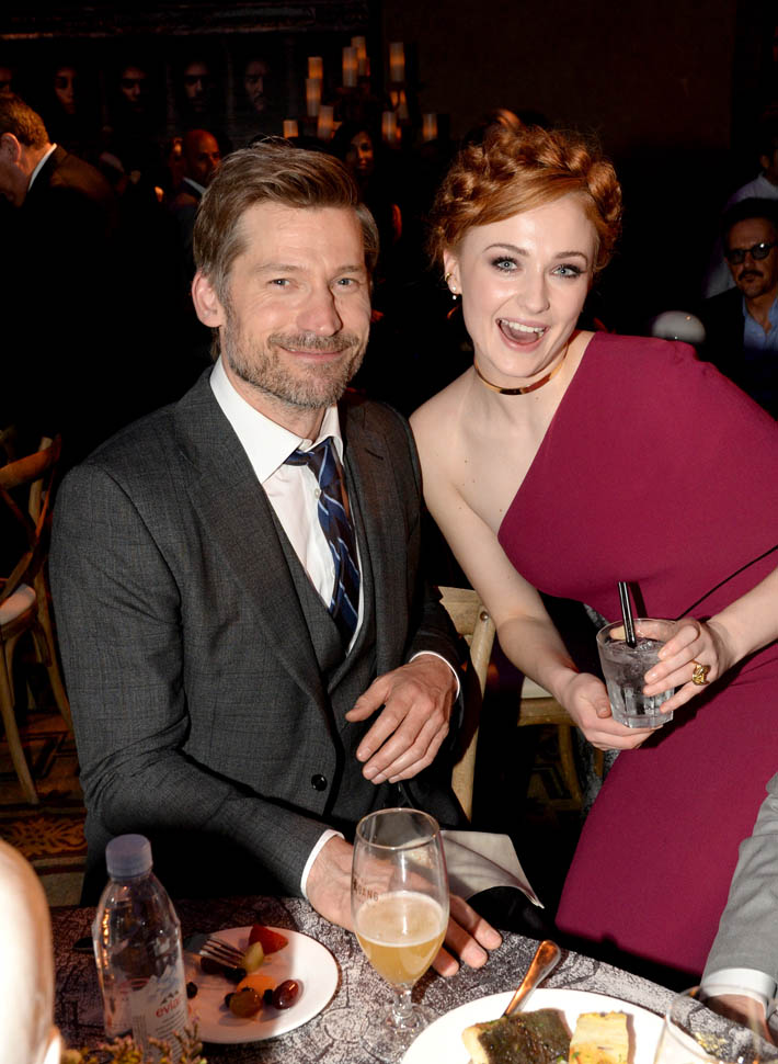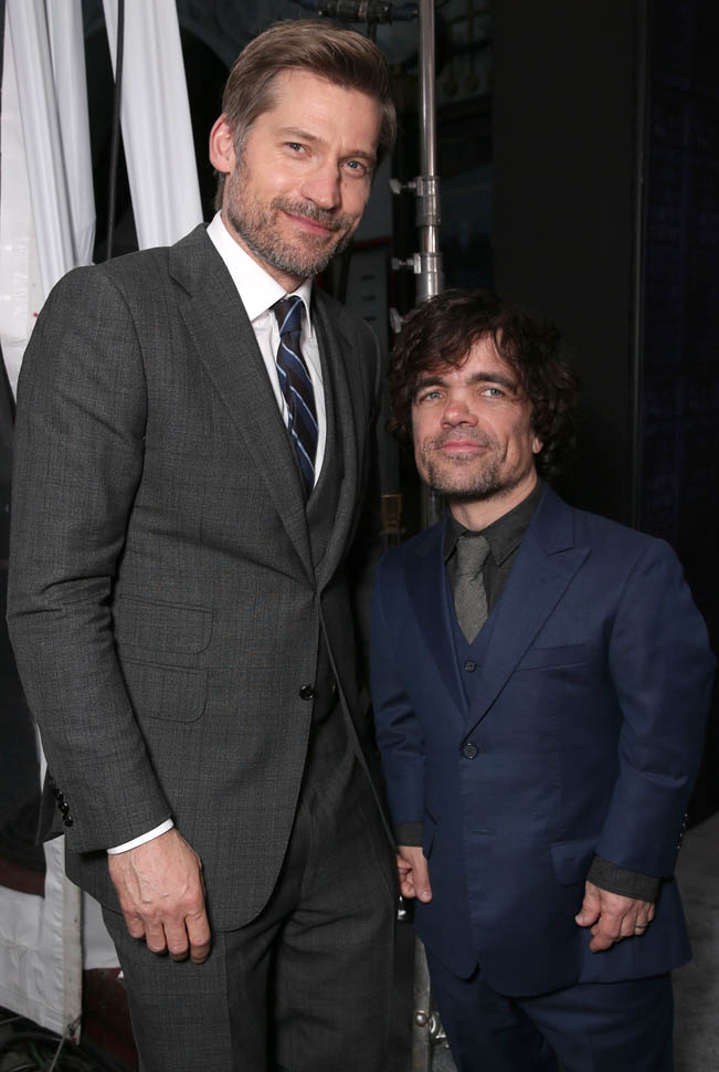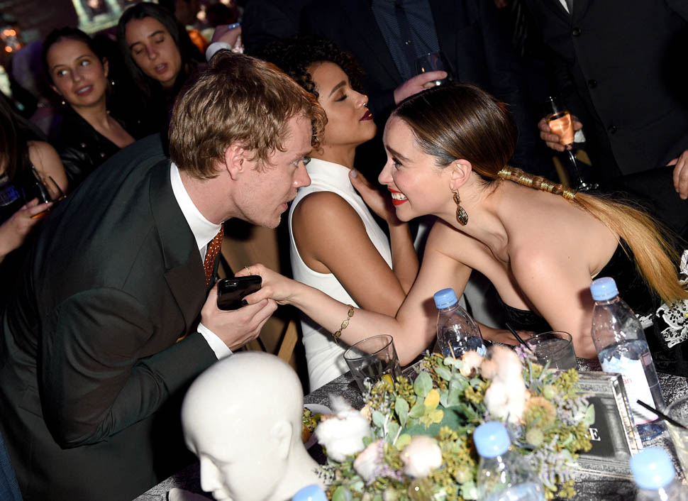 OK but please take a moment to admire Gilly, aka Hannah Murray. Gilly! I barely recognised her. Gilly wore one dress on the carpet and changed into a red suit inside the party to pose with Samwell Tarly aka John Bradley. I see you Gilly, I see you.