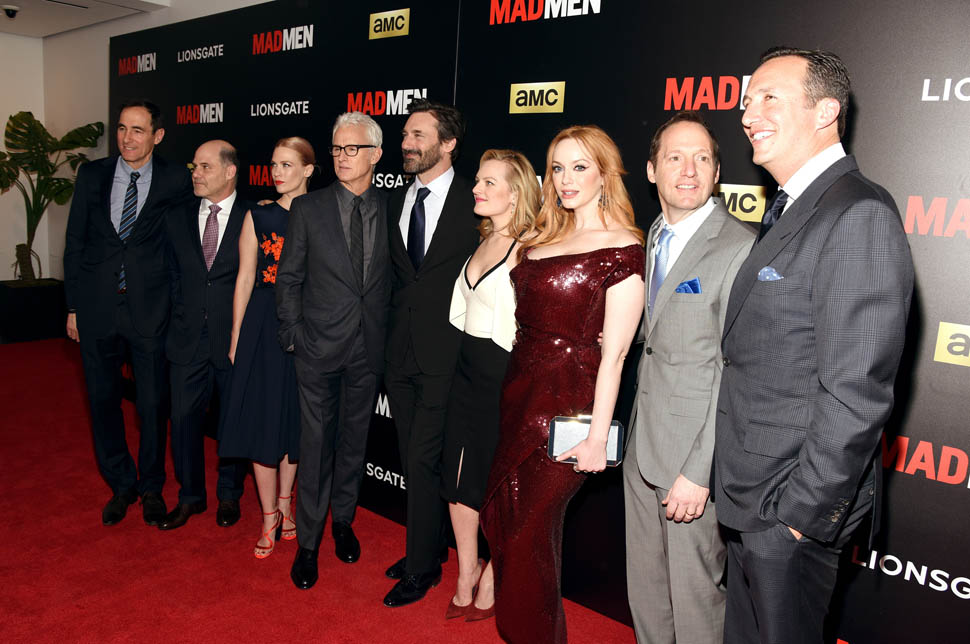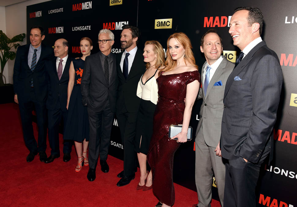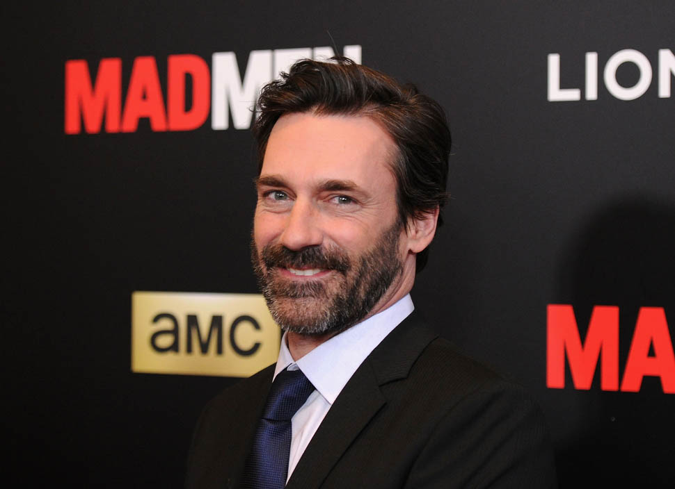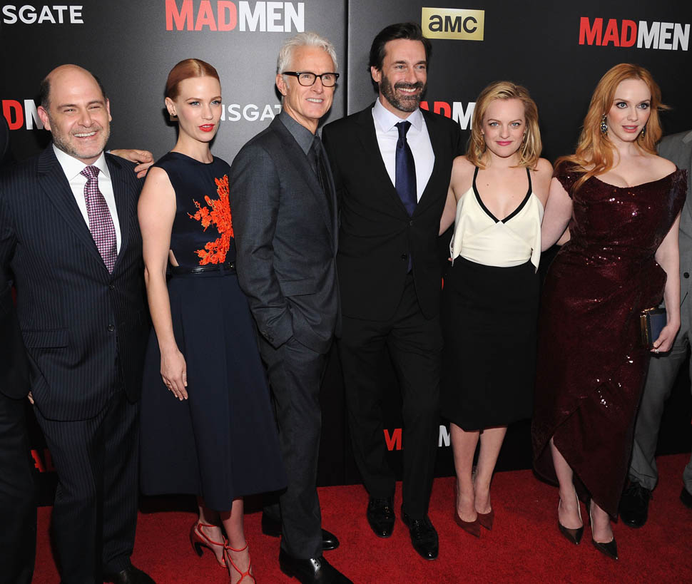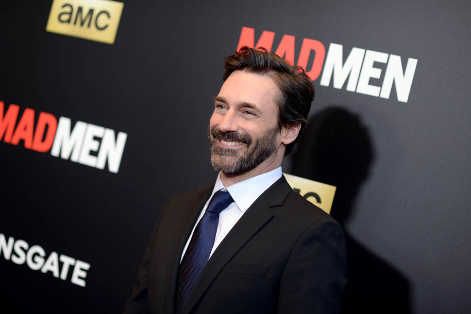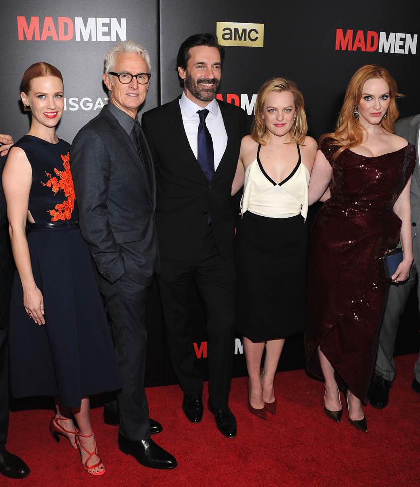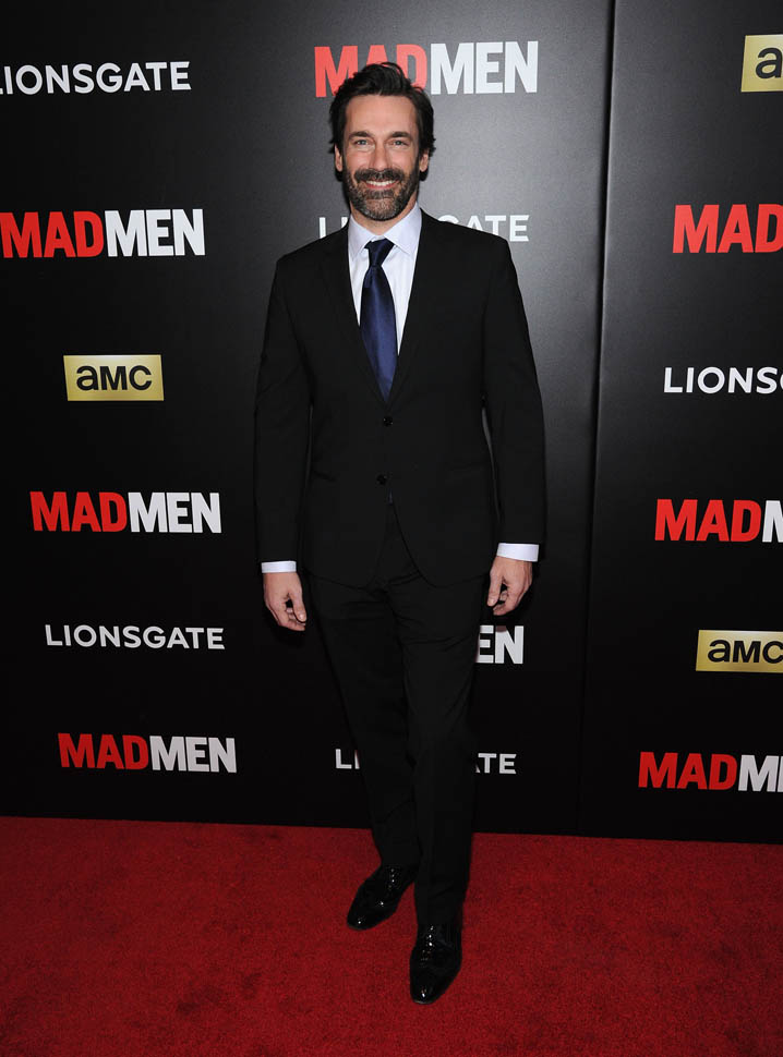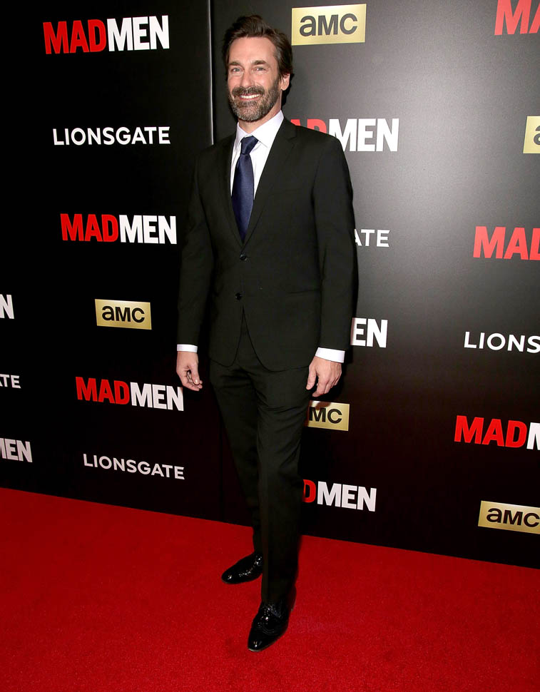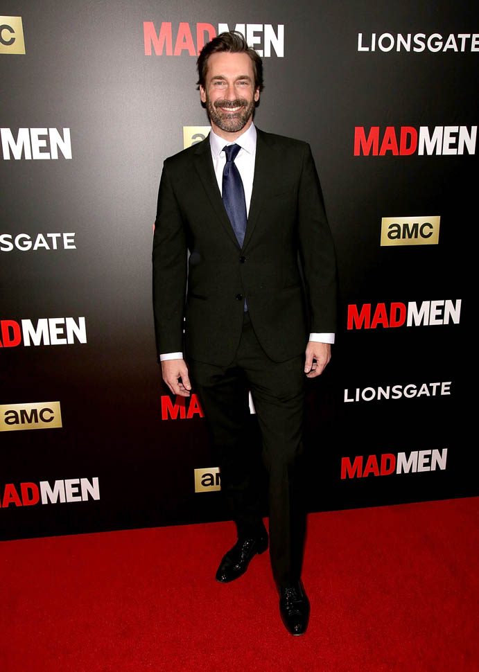 The cast of Mad Men has now embarked on the farewell tour. Last night they were in New York for a special screening. Holy sh-t. Jon Hamm hasn’t looked this good in a long time. Fresh and well-rested and…happy. (Will Don ever be happy?) And the length of his hair is perfect right now. PERFECT.
