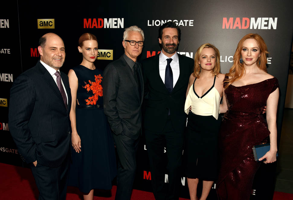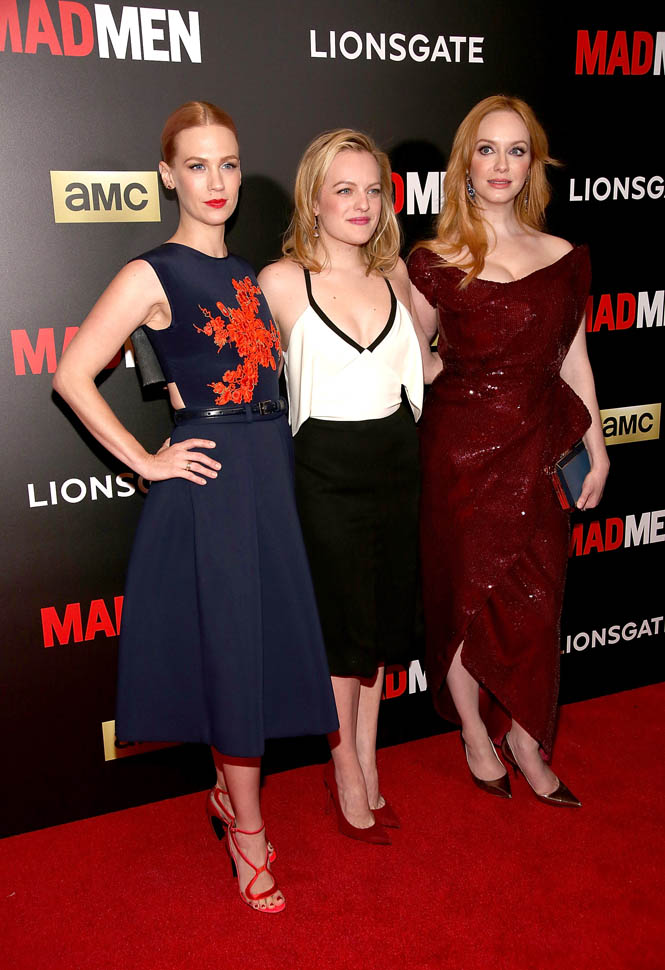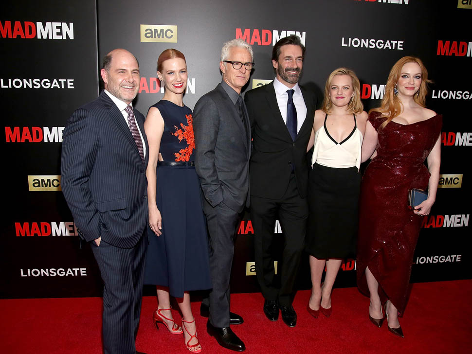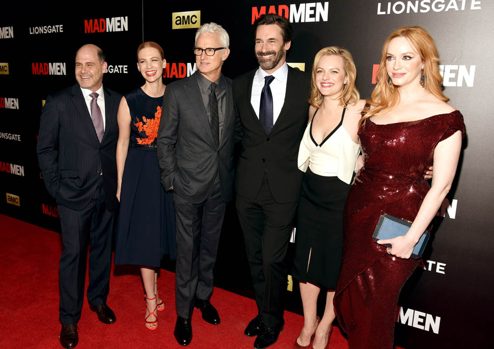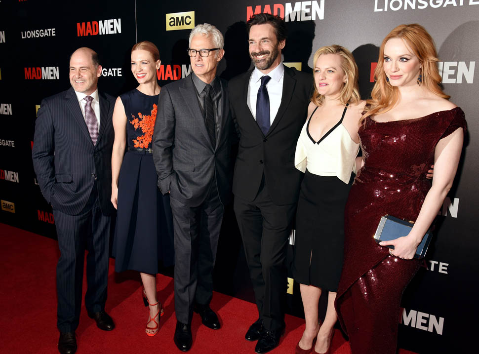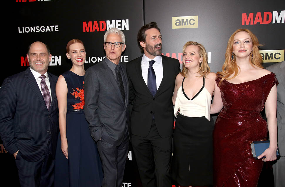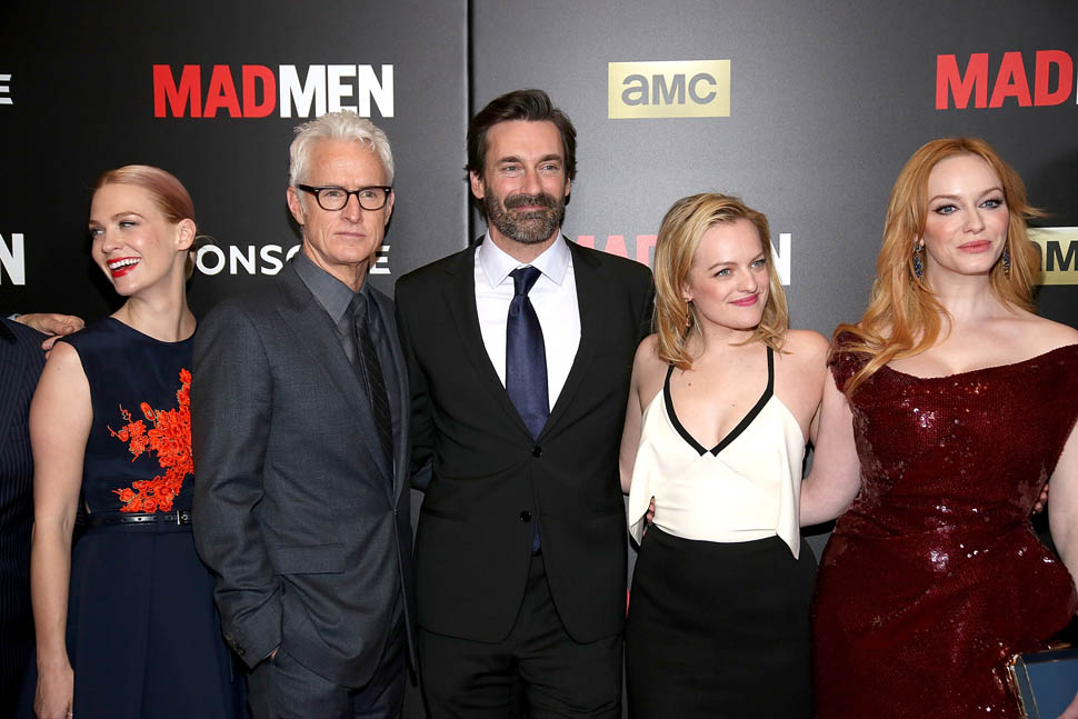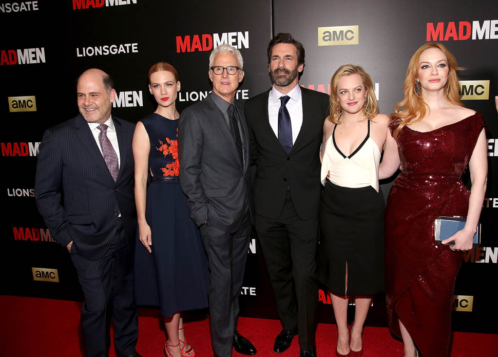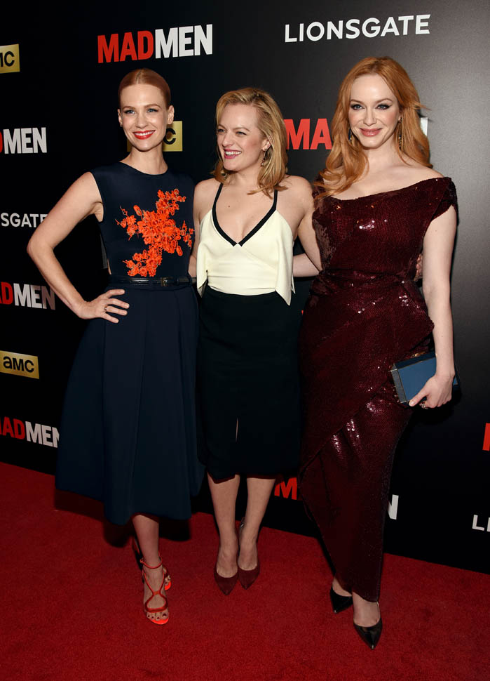 The cast of Mad Men has now embarked on the farewell tour. Last night they were in New York for a special screening. Holy sh-t. Jon Hamm hasn’t looked this good in a long time. Fresh and well-rested and…happy. (Will Don ever be happy?) And the length of his hair is perfect right now. PERFECT.