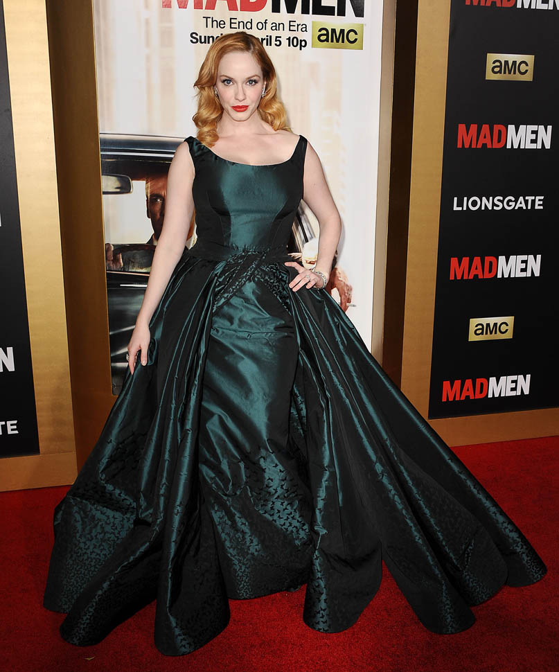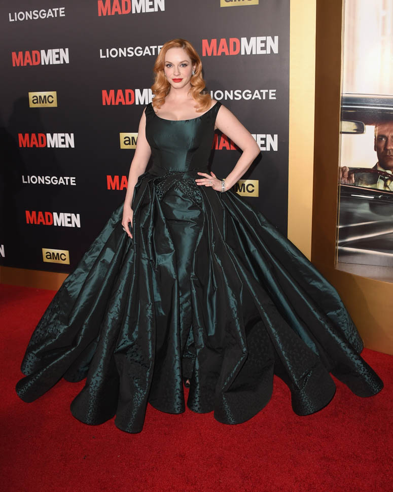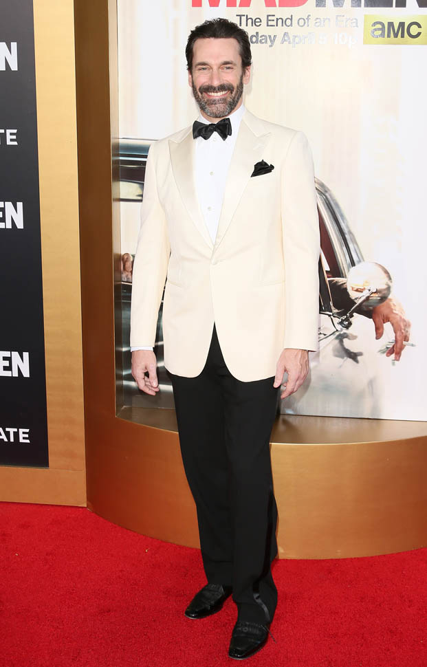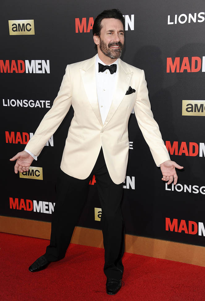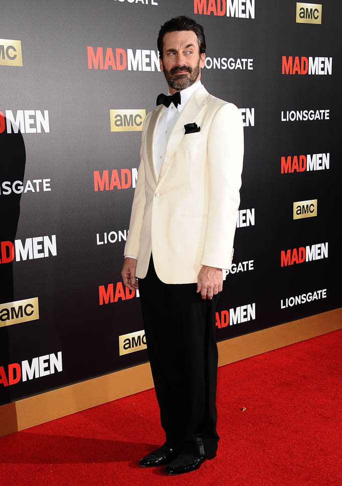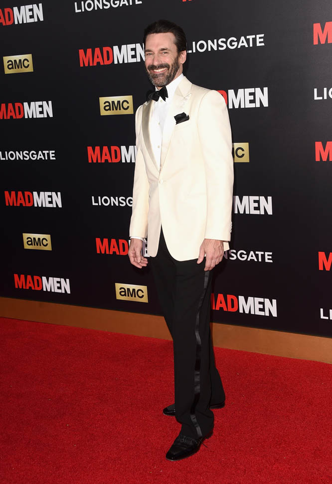 It’s probably the last major carpet for the show before it concludes in about 8 weeks. So Jon Hamm went all out in a white jacket tux. And Christina Hendricks went all out in a dramatic gown…