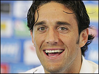 How could the last Daily Footie not be from the Azzurri? And how could any woman or gaygay resist the charms of Luca Toni? I’m sure I don’t need to explain to his hotness to your loins. The man is sex on a pitch, that’s all. However, Luca has been chosen not only for his physical appeal but also for his sexy ass name. Forget Hugo! Luca is now at the top of my list if I ever decide to thaw out my womb and give my husband an heir. Is it wrong to have a baby just so I can call him Luca? Luca S? Half Pole, half Chinese, Italian inspired, and Canadian conceived? Hmmm…something to consider…