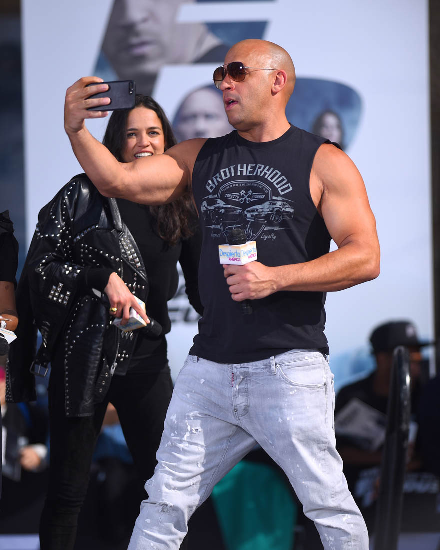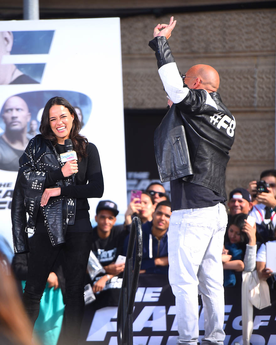 Attached - Vin Diesel and Michelle Rodriguez at a F8 event in New York the other day.