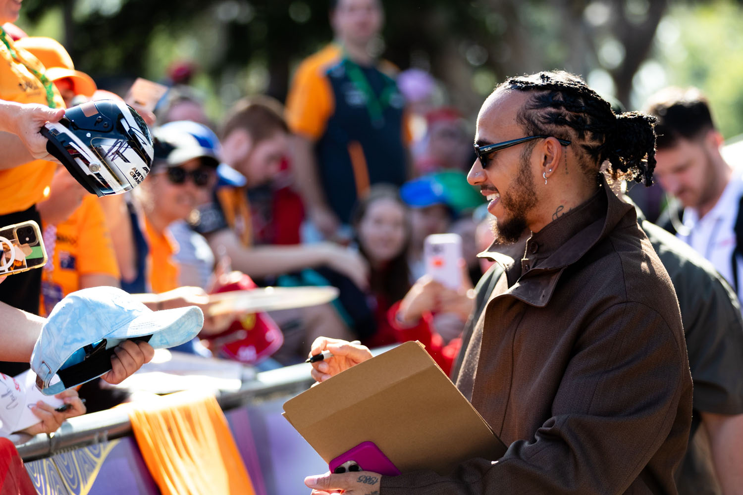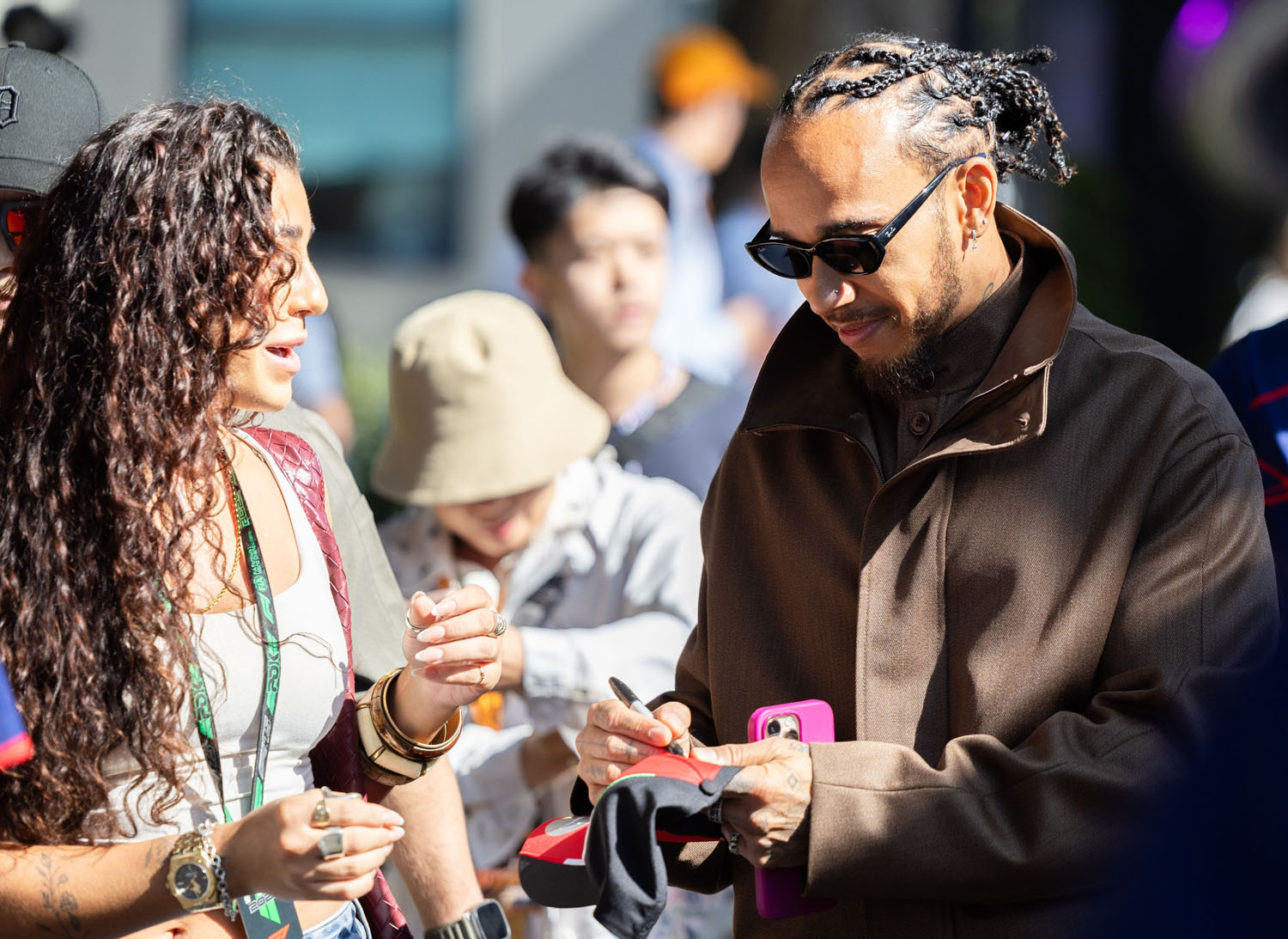 Speaking of Formula 1, here is Lewis Hamilton, who will appear as himself in F1, in Australia today, still withholding Ferrari red in his fit.