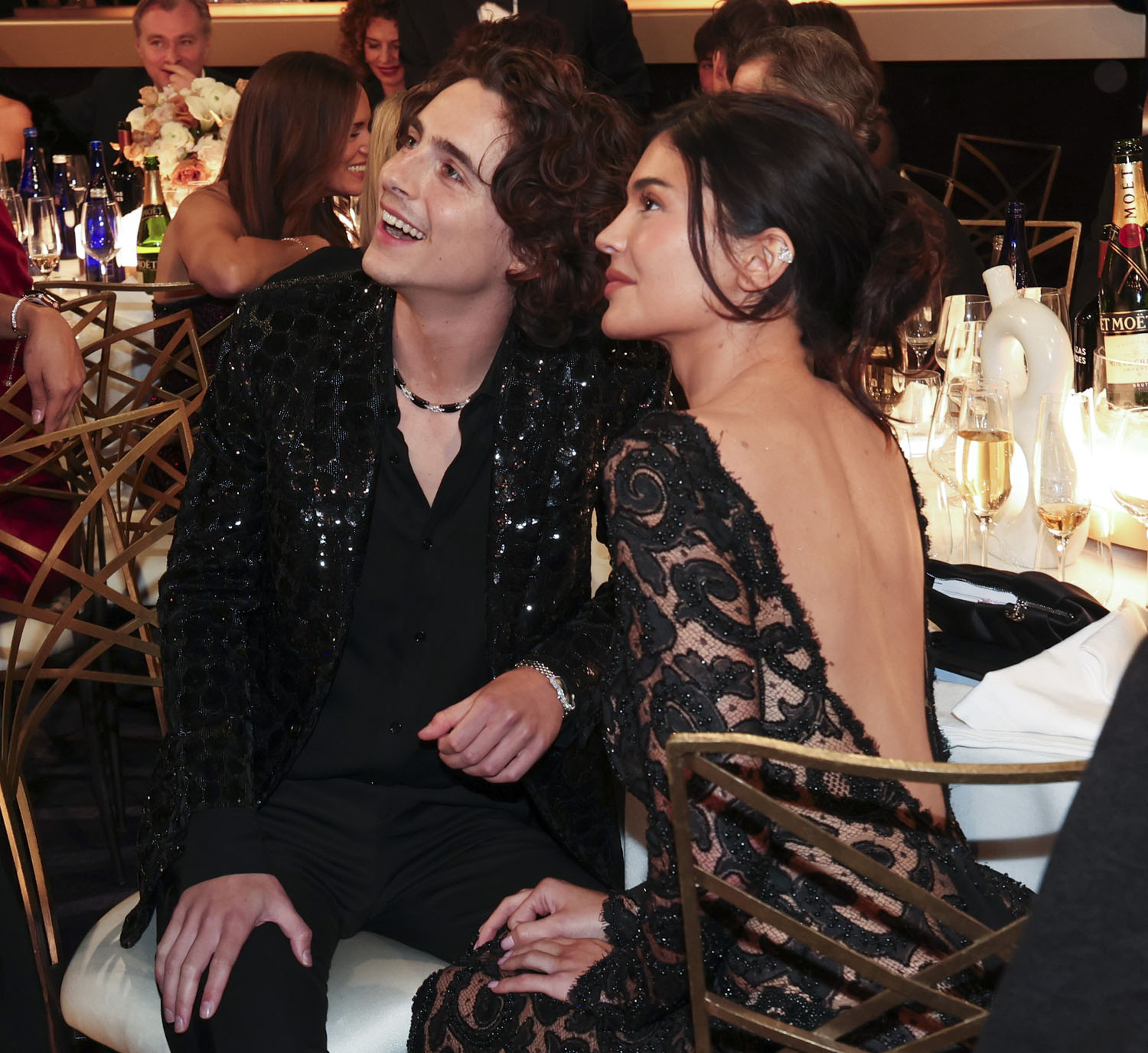 Horny. This is giving let’s not hit the afterparty so we can go home and f-ck. At least that’s what Timmy wants. Kylie, however, is Kris Jenner’s daughter – it’s been programmed into her to flex at the Golden Globe afterparty with the holiday season’s reigning box office king. In my imagination what she’s doing here is negotiating: can’t we just stop by the afterparty and then we can home and f-ck?