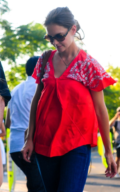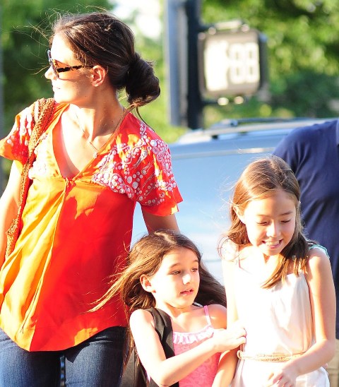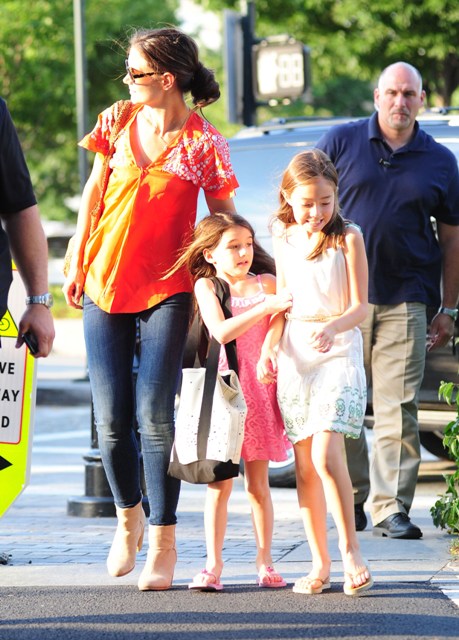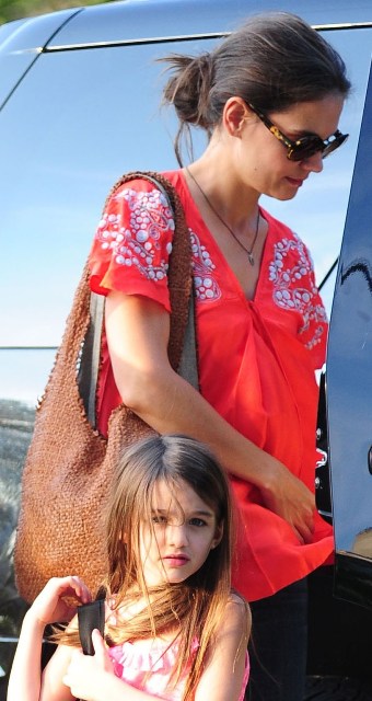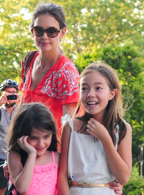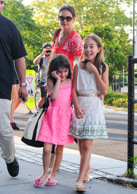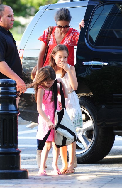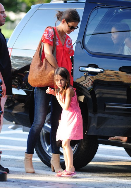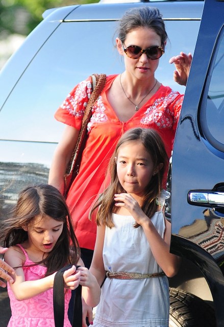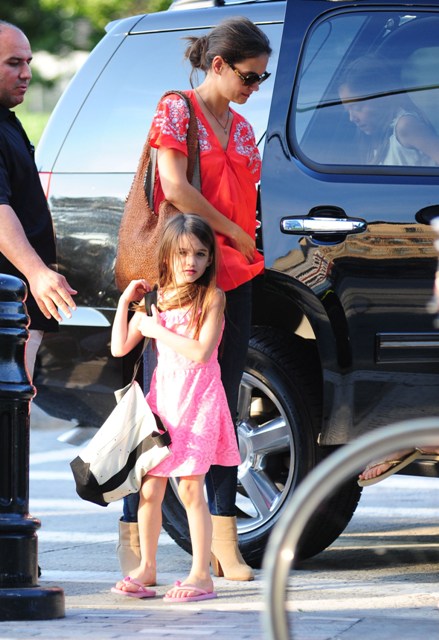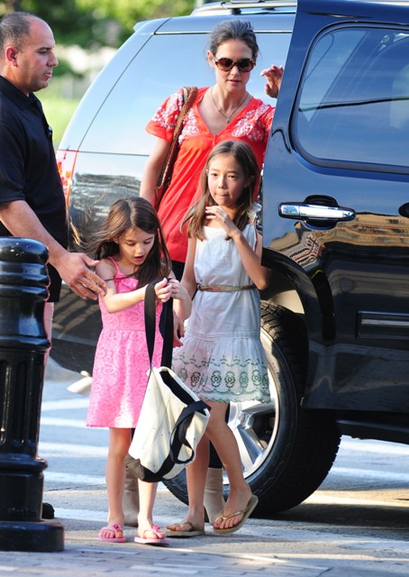 Katie Holmes took Suri and a friend (?) to gymnastics class yesterday in New York. You know what I love about these shots? Look at the first photo in the series. Had she not filed for divorce, this would be next week’s cover of Star Magazine with the caption: