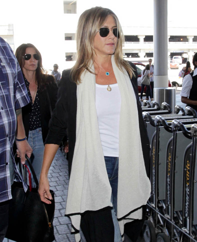 Here’s Jennifer Aniston arriving back in LA yesterday. It’s been a week since Jennifer Aniston told us that she is “fed up” with tabloid culture and impossible beauty standards and you wondering if she’s pregnant. You’ll recall, Jennifer wrote her op-ed for The Huffington Post. Not The New York Times. Not Vanity Fair. But HuffPo. And, as so many others have pointed out, it’s very possibly because she and Arianna Huffington are friends. In 2015, Arianna hosted a luncheon in Jen’s honour to help her campaign for an Oscar for her performance in Cake. Earlier this year the two did a Q&A together about sleep and Arianna’s book.