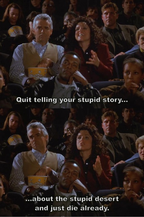 I realize I'm in the minority here, but my lack of interest is nothing compared to Elaine's seething hatred for The English Patient.