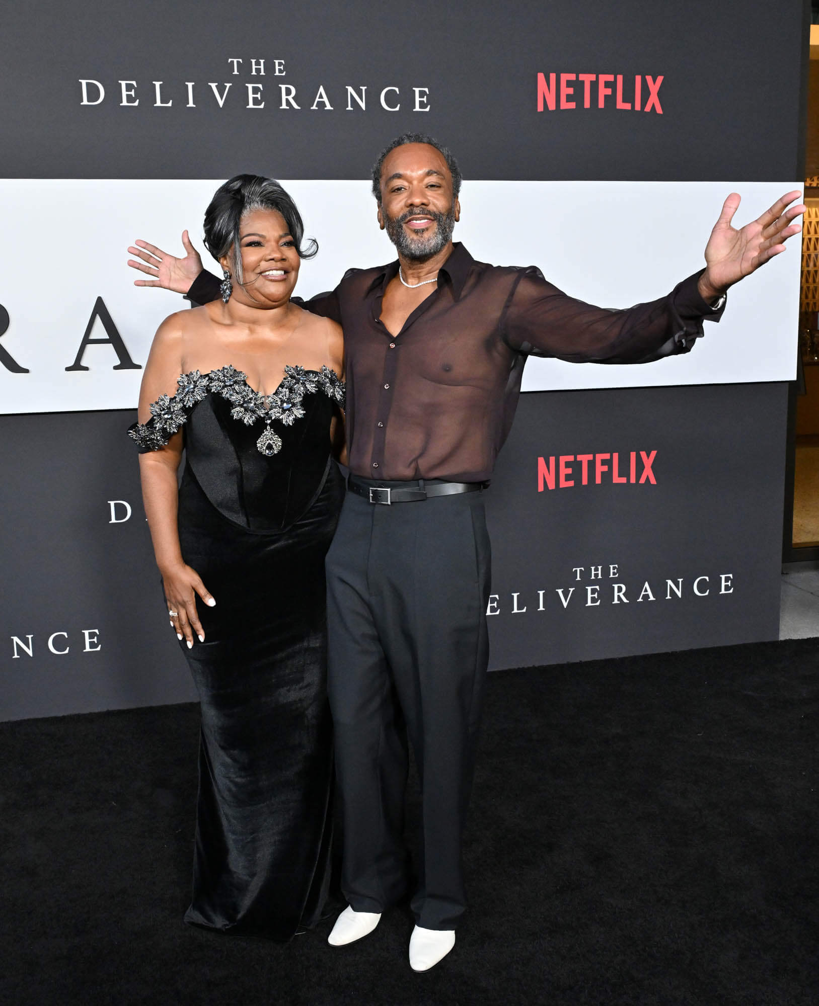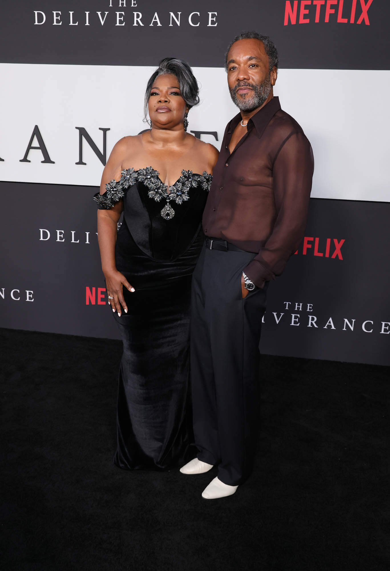 Attached: Lee and the cast of "The Deliverance" at the Los Angeles Premiere on August 28, 2024.