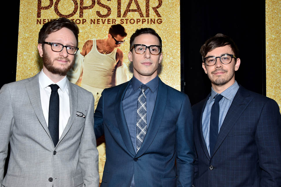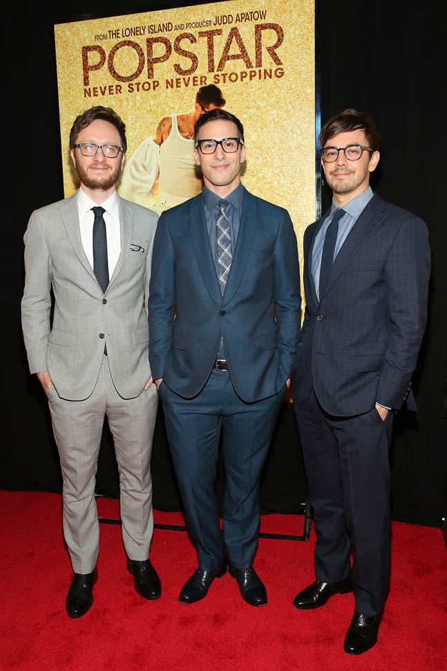 Attached - Andy Samberg, Akiva Schaffer, and Jorma Taccone at the premiere of Popstar last week in New York.