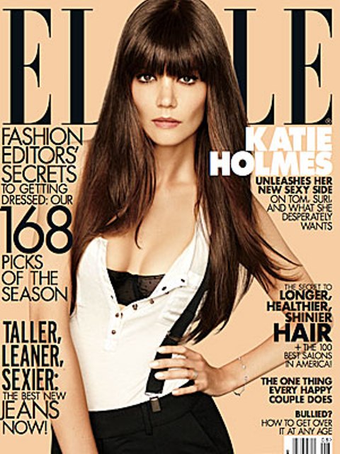 That, of course, was the Old Katie. Or the old Old Katie. Old Old Katie was Josephine Potter. The New Katie is ferocious mother of Suri and opponent of Tom Cruise, no longer Old Katie who was lobotomised by Xenu. New Katie covers the upcoming issue of ELLE and, even though the shoot and interview took place before she surprise-filed for divorce, showed signs that she was recovering from her 7 year stupor. In the past, as well documented, when asked about marriage to Tom Cruise, KatE would keep repeating the mantra: