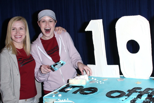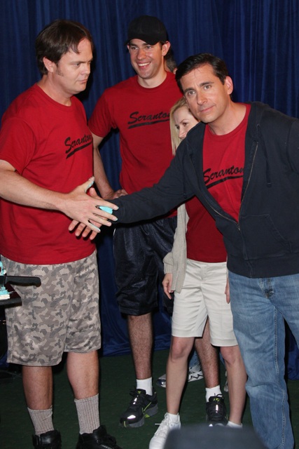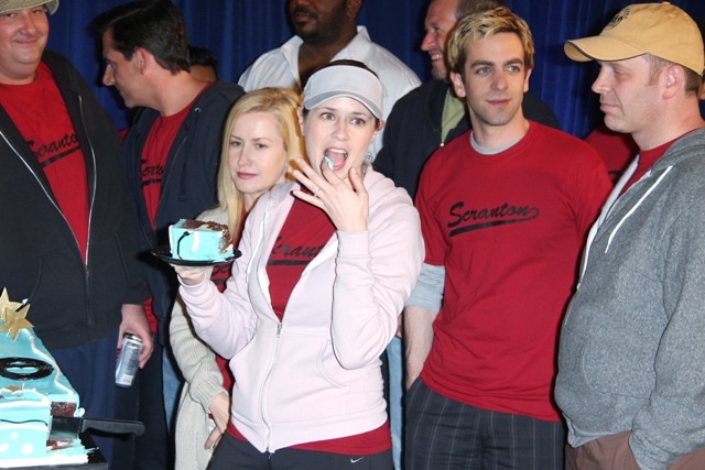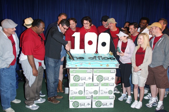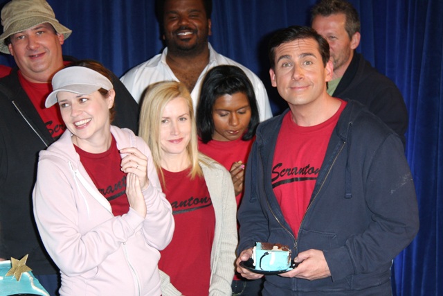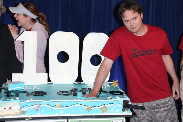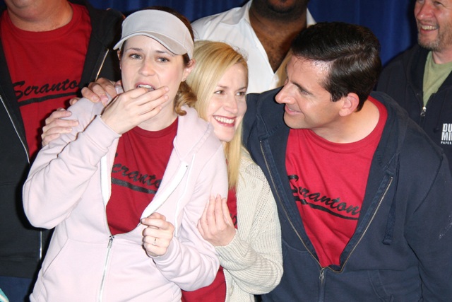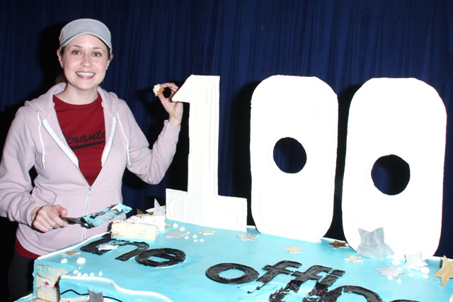 The Office celebrated 100 episodes yesterday at Calamigos Ranch in Malibu. Most (all?) castmembers were in attendance including the adorable Jenna Fischer and of course everyone’s boyfriend John Krasinski who looks like he has tiny ankles and this is not attractive to me so let’s forget about them please, quickly, right away...
