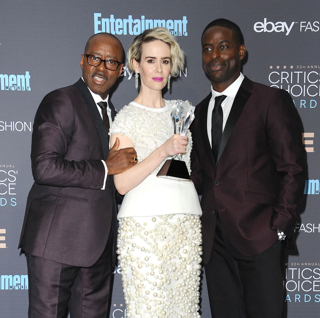 The men of The People vs OJ Simpson came colour-coordinated to the Critics’ Choice Awards last night. Courtney B Vance and Sterling K Brown were both in burgundy suits. And they both won. Ryan Murphy and John Travolta also wore burgundy. And The People vs OJ Simpson won the category. Not surprisingly. The People vs OJ Simpson was also heavily nominated at the Golden Globes this morning, as Courtney, Sterling, and Sarah Paulson receiving nominations – and John Travolta too! At this point, there is almost no way the series won’t be running the same victory lap in January, both at the Globes and the SAGs.