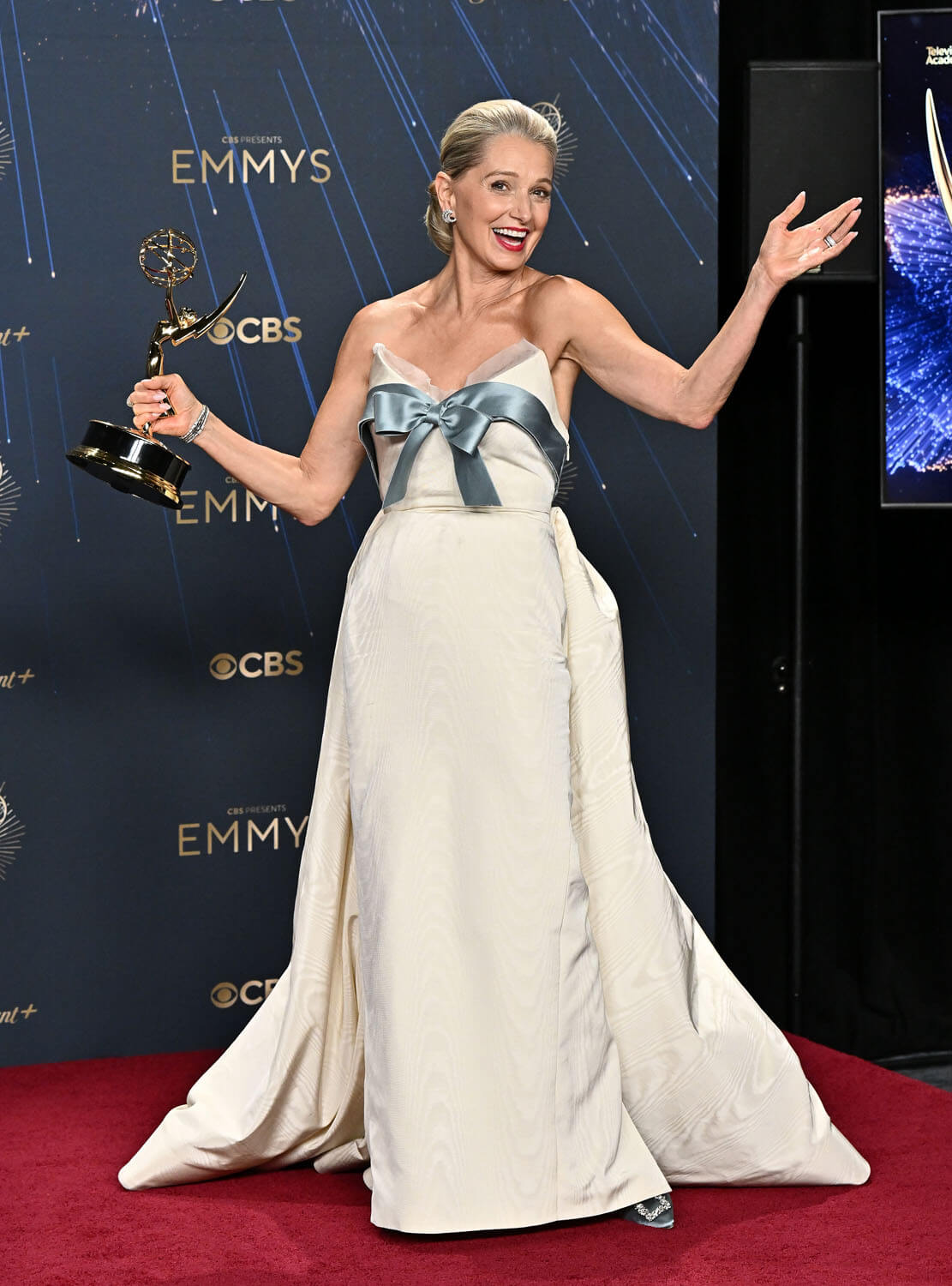 As for Katherine LaNasa (in custom Jason Wu), she is returning to The Pitt for a second season, despite Dana seeming ready to quit after the end of the shift in season one. LaNasa’s win comes after a thirty-five-year career in which she has guest-starred on pretty much every TV show (she was in episode 106 of Justified, playing a murderous horse trainer). She was even in an episode of ER over twenty years ago!