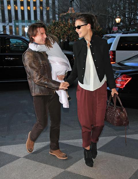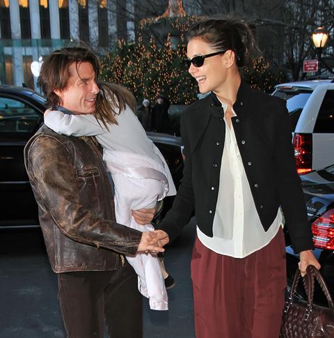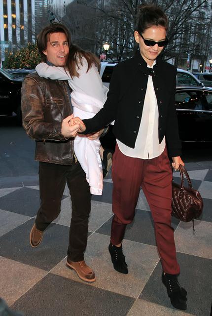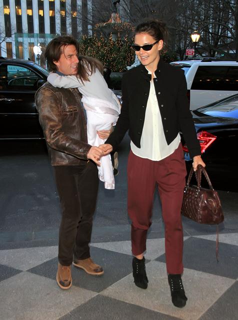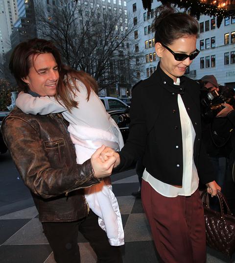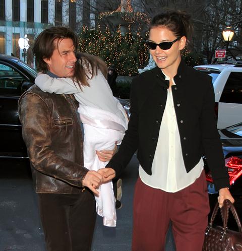 Here are Tom and Robo in New York where they spent her birthday this weekend. Today it was over to the Plaza Hotel with Little Sci. As you can see, Tom Presents Katie, with Suri in his arms, as they’re walking into the lobby. It’s the Presentation while multitasking, a great, great challenge to an already signature move. Their equivalent of a Triple Lutz, Triple Loop, Double Toe! Happy Christmas!