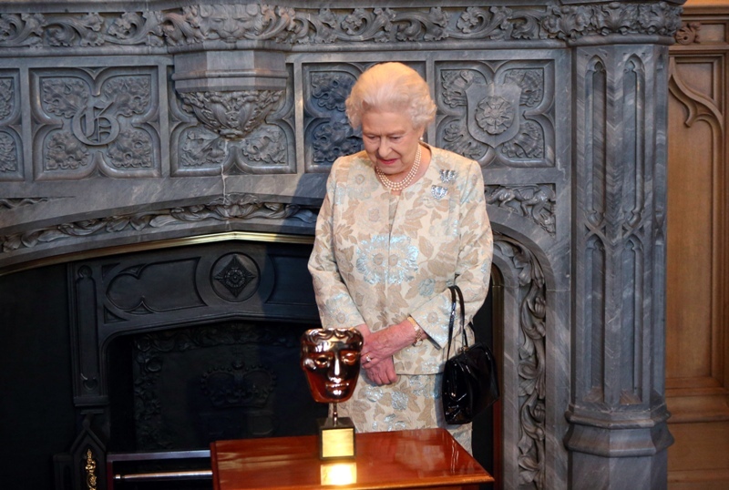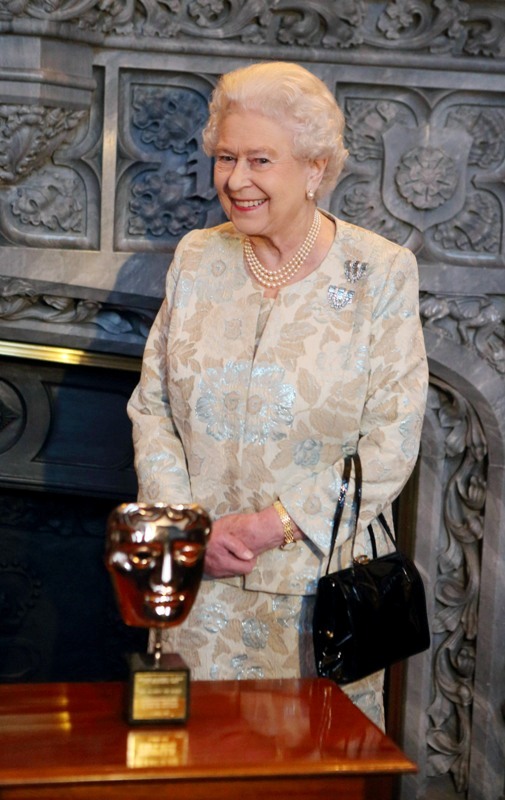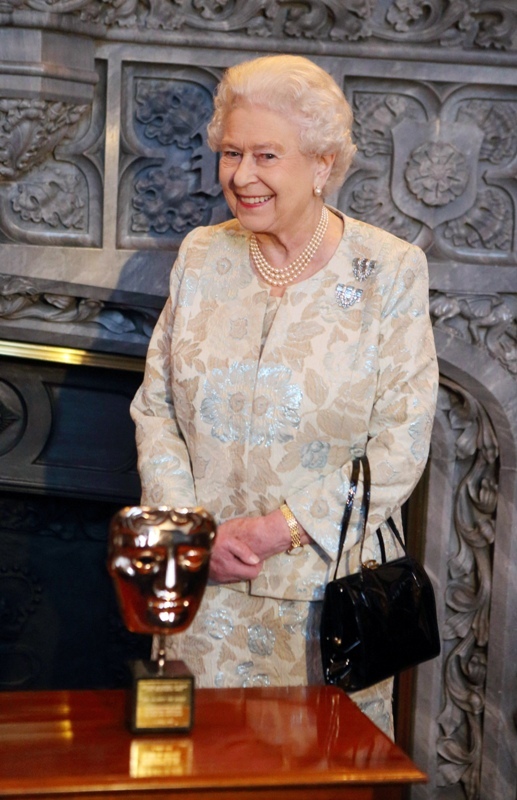 The Queen was presented an honourary BAFTA award yesterday for her support of British film and television but, really, let’s be honest, it was for her performance as a Bond Girl at the Olympics. Look at her! She’s as delighted as Anne Hathaway but infinitely less gushy.
