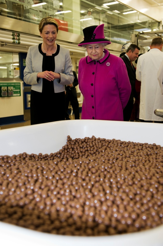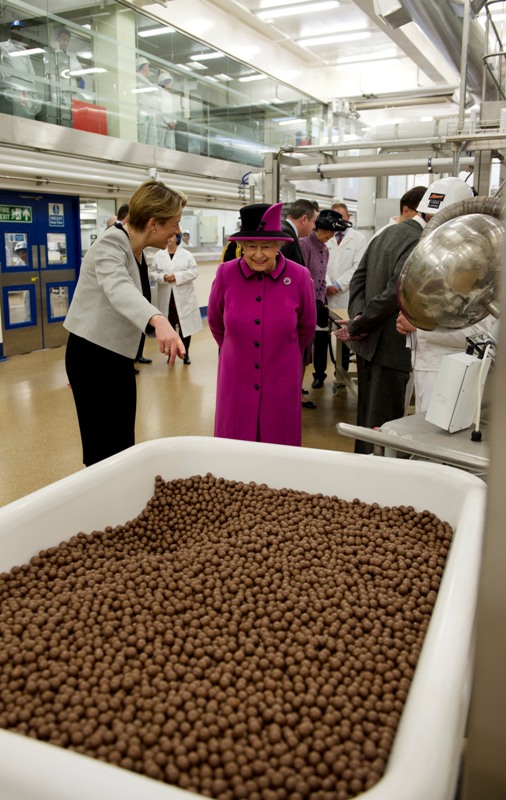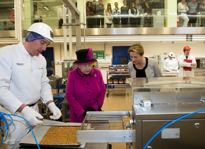 Today the Queen was back at work in a much less fancy setting visiting the Mars chocolate factory in Slough. (Wernham Hogg!) As you can see, the Queen seems equally as engaged learning about how they make candy bars as she is when she’s being recognised as a thespian. You really think Her Majesty eats Mars?