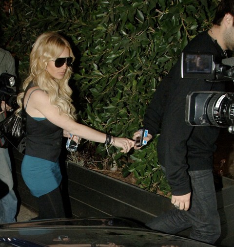 Here are several shots of Lindsay out and about yesterday. You will note her arms are noticeably leaner. Not alarming quite yet…. But…