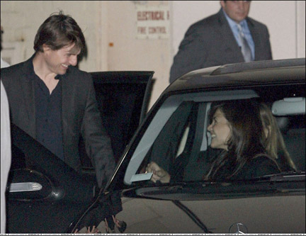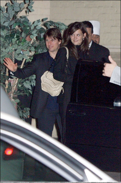 A very public dinner outing last Friday. And great timing at that. Weeks of low key living, weeks of Little Sci mysteries, weeks of rumour mongering and speculation and suddenly Katie emerges from the fog – more beautiful than ever, so attractive I can’t stop complimenting her, such is the gift of Scientology I suppose. They understand the power of the pretty, they’ve wooed us before with the power of the pretty, and right now, Katie is their strongest asset. And wedding buzz is the hottest bait. Now that Katie is glowing and Little Sci has been stationed, the one thing left is to lock up this marriage. So if the gossip around the Vanity Fair photos is accurate, likely for a popular October issue, that would mean the magazine would drop in mid September, which gives us a small window for an official union to drive home the hype. Word is it’s going to happen to soon. Will keep you posted…