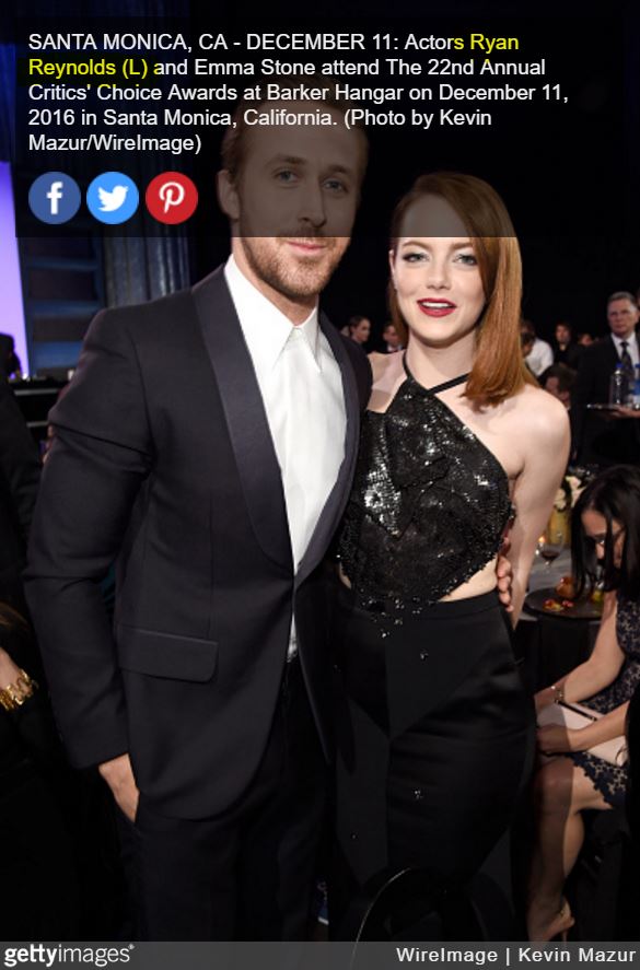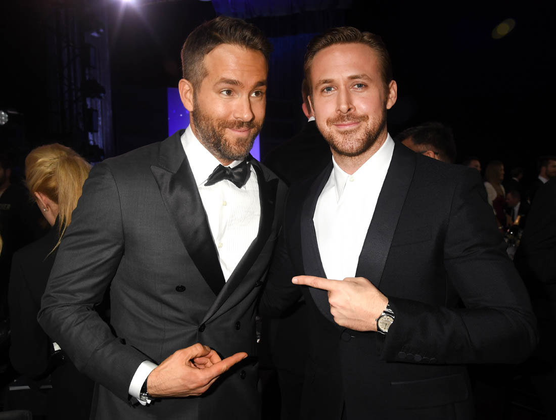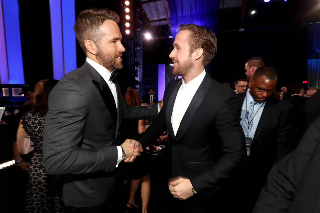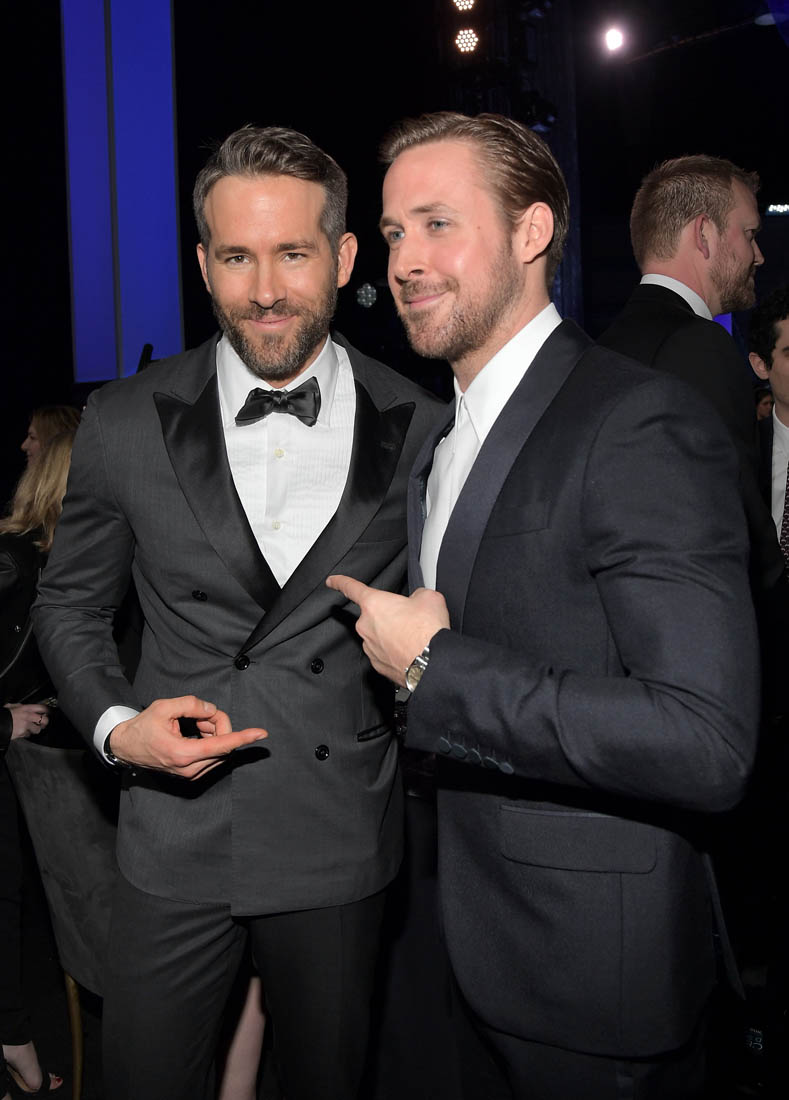 Ryan Gosling and Ryan Reynolds at the Critics’ Choice Awards last night. Ryan Reynolds was honoured as the Entertainment Weekly Entertainer of the Year and the Best Actor in a Comedy and Deadpool was named Best Comedy while Ryan Gosling was there with La La Land which won for Best Drama. There are more parallels.