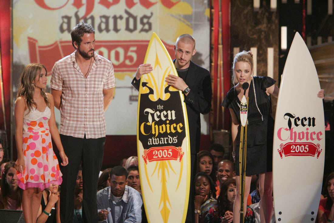 Anyway, whatever, it’s not like either one is hurting from this so let’s move on to the fact that the Ryans from Canada were at the same place at the same time last night and… we have new photos of them together. Joanna emailed me last night wondering if it’s the first photos of them together since these shots of them together. It was Teen Choice. It was 2005. It was two Ryans and a Rachel from Canada.