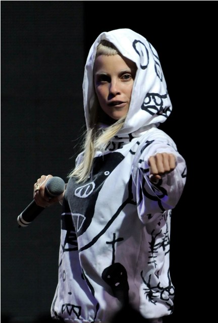 He was also pursuing South African musician Yo-Landi Vi$$er, lead singer of the band Die Antwoord but – and I love this – she doesn’t give a sh-t about acting. Which means of course now I wish she was playing Lisbeth. Look at this girl. See below Yo-Landi at Coachella. With black hair and more tats and piercings? Yeah, I could live with that. But she couldn’t live with that.