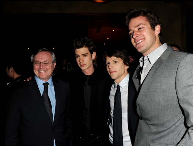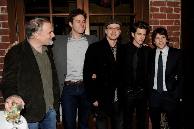 In service of the launch, and a very strategic campaign, all of the film’s major players were in Beverly Hills last night at the event including Jesse Eisenberg, expected to be nominated for Best Actor, Aaron Sorkin, a sure bet for an adapted screenplay nod, David Fincher, who will definitely make the Academy’s list of directors, Andrew Garfield, Armie Hammer, and, of course, Justin Timberlake.