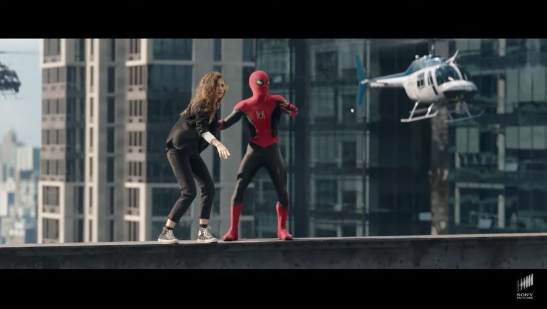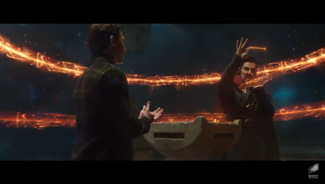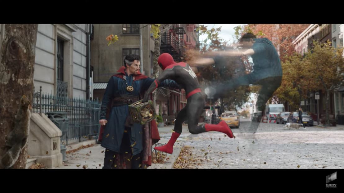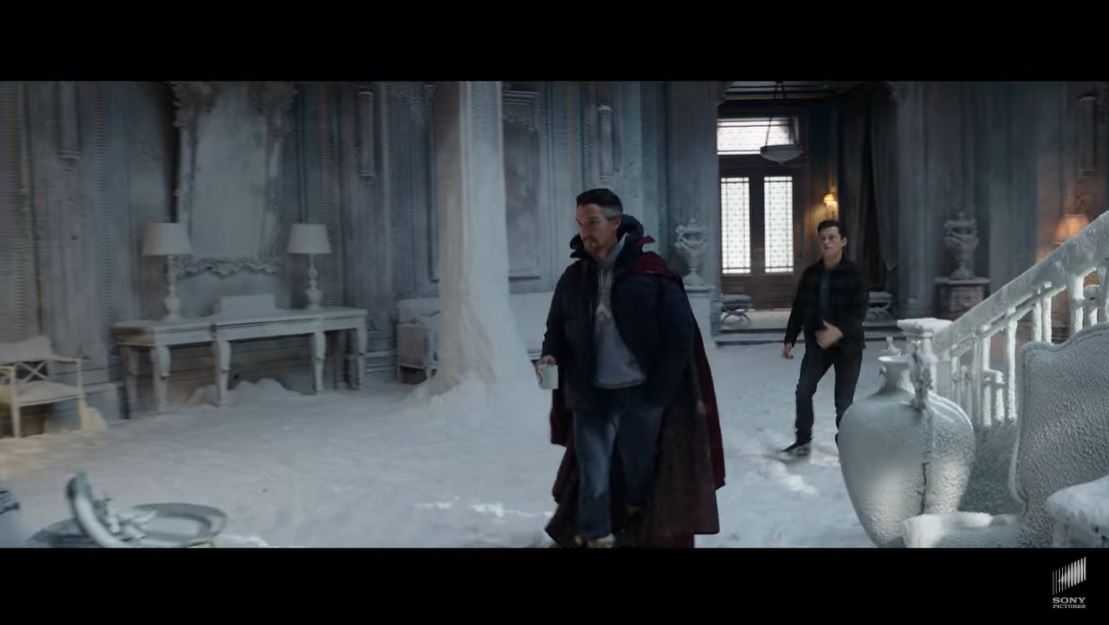 Tom Holland remains as winning as ever as Peter Parker, but Benedict Cumberbatch, a classic screen tyrant, does what screen tyrants always do and sucks up all the oxygen in the room. From his first appearance in a ski sweater, sweatpants, and cape—I love the idea that Stephen’s fashion sense is now so skewed by the sorcerers and his lack of funds that he’s just wearing anything—to the giant question mark surrounding his actions, Strange is dominating this trailer. It’s not just Cumberbatch himself, it’s also that Peter goes to Strange for help fixing his problem of a public identity, and that we see a lot of Strange-esque visuals like the folding city and colorful space wormholes that we saw in Doctor Strange. The crux of the conflict is that in order to escape immense public pressure after having his identity exposed, Peter asks Strange to “make the world forget” he’s Spider-Man. This appears to be a spin on the Spider-Man comics One More Day and Brand New Day, in which Mephisto erases Peter and MJ’s marriage in exchange for re-burying Peter’s identity in the wake of Civil War.