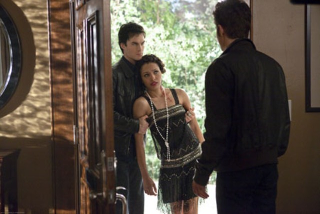 Salvatore's. Damon and Straight-Hair Bonnie. Sorry, that's going to annoy me. Did she borrow Elena's clothes? Anyway, the twee, ridiculous doorbell goes off and it's Bonnie's mom. They have a little awkward mother-abandoned daughter repartee, and they say “Jamie” enough times that I'm pretty sure he's not in this episode. At school, Klaus and Stefan discuss, and then Klaus points out that he'll still take Elena if they take Alaric down. Stefan's all “no prob, I'll come”. Klaus tries to twist the knife via “yeah, Damon's a bad guy” but Stefan rises above. Then Klaus says he'll leave it to Elena to decide, Stefan shrugs, and brotherly love really does seem to be lost on him. Obviously.