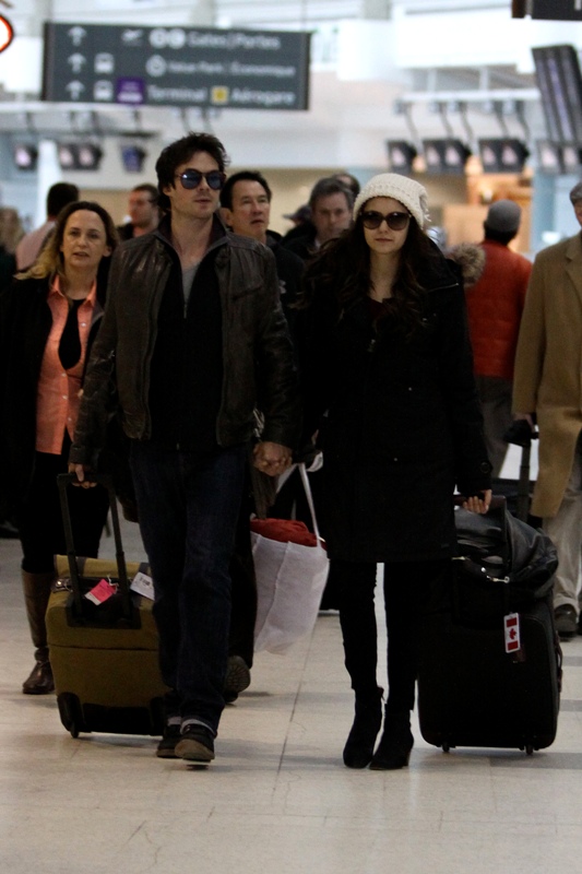 Attached -- Nina Dobrev and Ian Somerhalder in Toronto to see her family for Easter which means, obviously, that they are still together.
