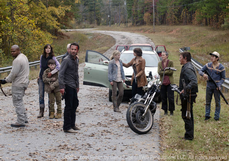And we’re back to square one, at the site where the group originally got stranded on the highway. Literally, they’re back to where they left supplies for Sophia. And now Carl is questioning Rick’s leadership. Hershel wants Rick to take Carl to safety (where is that, precisely?) but Rick doesn’t want to split up. Rick’s got the right of this one—they don’t need to fracture any more than they already are.