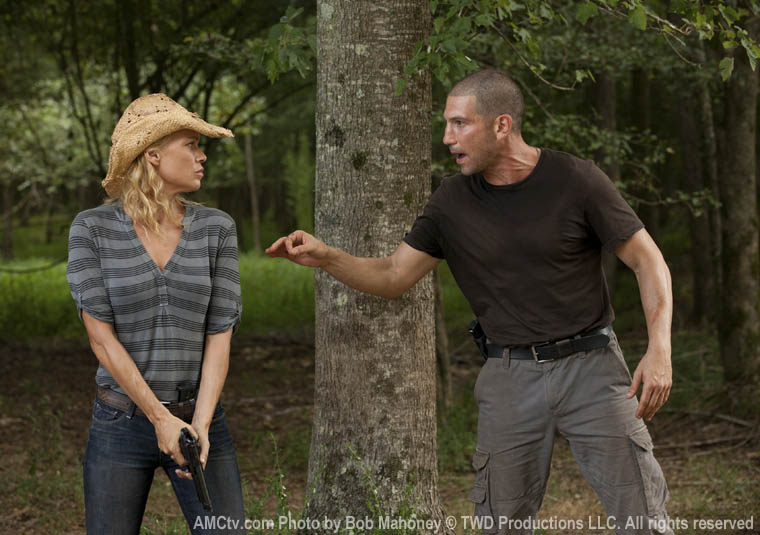 Dale confronts Lori about not telling Rick about her Horrible Mistake. For a moment, Lori is not so horrible and displays genuine sorrow that she’ll bring a child into a world saturated in fear and pain. She dismisses her affair with Stupid Shane and commits to Rick in a way that is guaranteed to drive Stupid Shane nuts somewhere down the line. And then she kills the moment by managing to bum out the perpetually optimistic Dale.