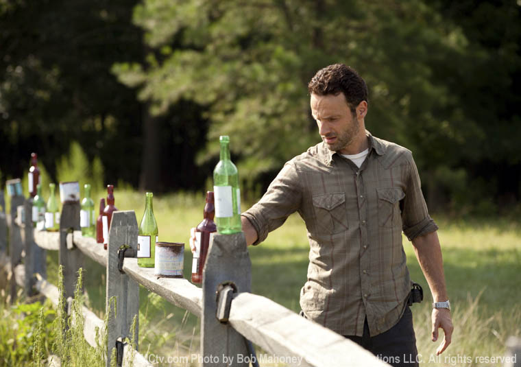 Glenn gets after Horrible Lori to tell Officer Rick about the baby and to eat better and take care of herself. He points out how skinny Horrible Lori is. I was just thinking about that—it looks like Sarah Wayne Callies has lost some weight between seasons 1 and 2. She appears to be the only one in the group whose body is changing over time (Andrew Lincoln and Jon Bernthal get a pass because Rick and Shane were already in great shape and wouldn’t have much weight to lose). This is like Lost when the fat guy stayed fat despite living off coconuts on that island.
