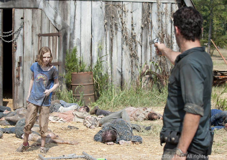 The last zombie to emerge from the barn is, predictably, an infected Sophia. Because a little kid surviving for days alone in this wilderness would’ve been completely unrealistic.