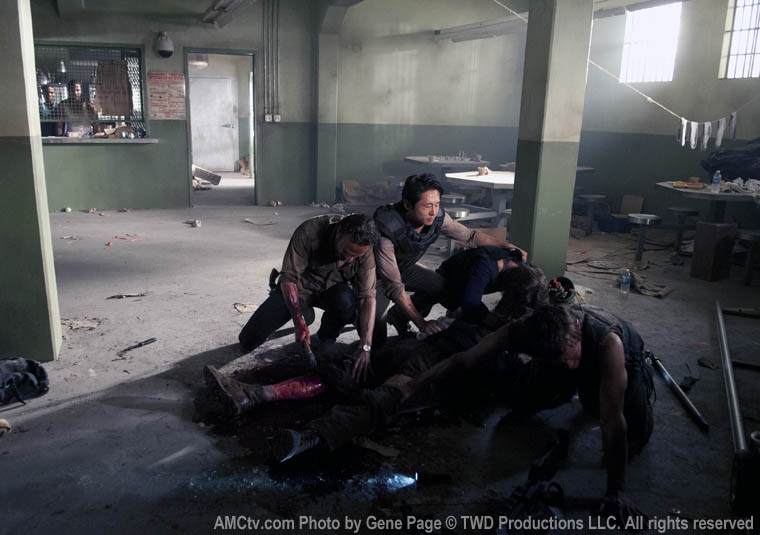 Picking up right where episode one left off, with Hershel’s leg amputated and a group of strangers happening upon Rick & Co. The others are a group of prisoners. Rick & Co. are like, get the F*CK out of our way while we try and save this dude, and the prisoners are all, WTF?