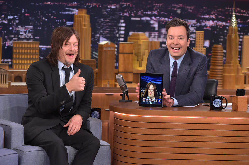Attached - Norman Reedus on The Tonight Show last night.