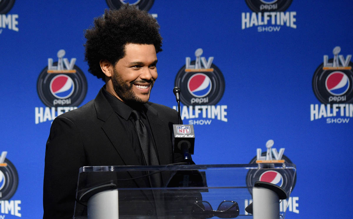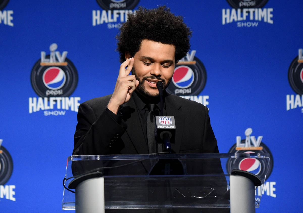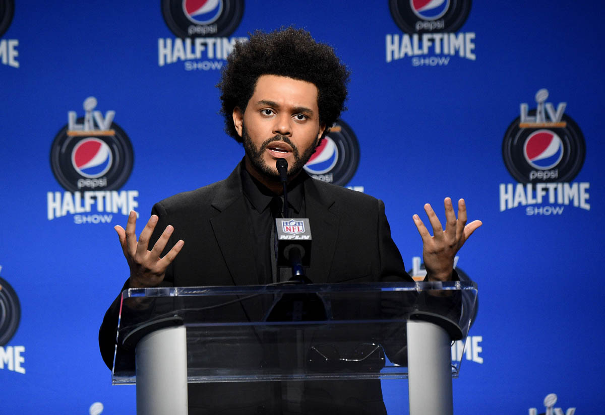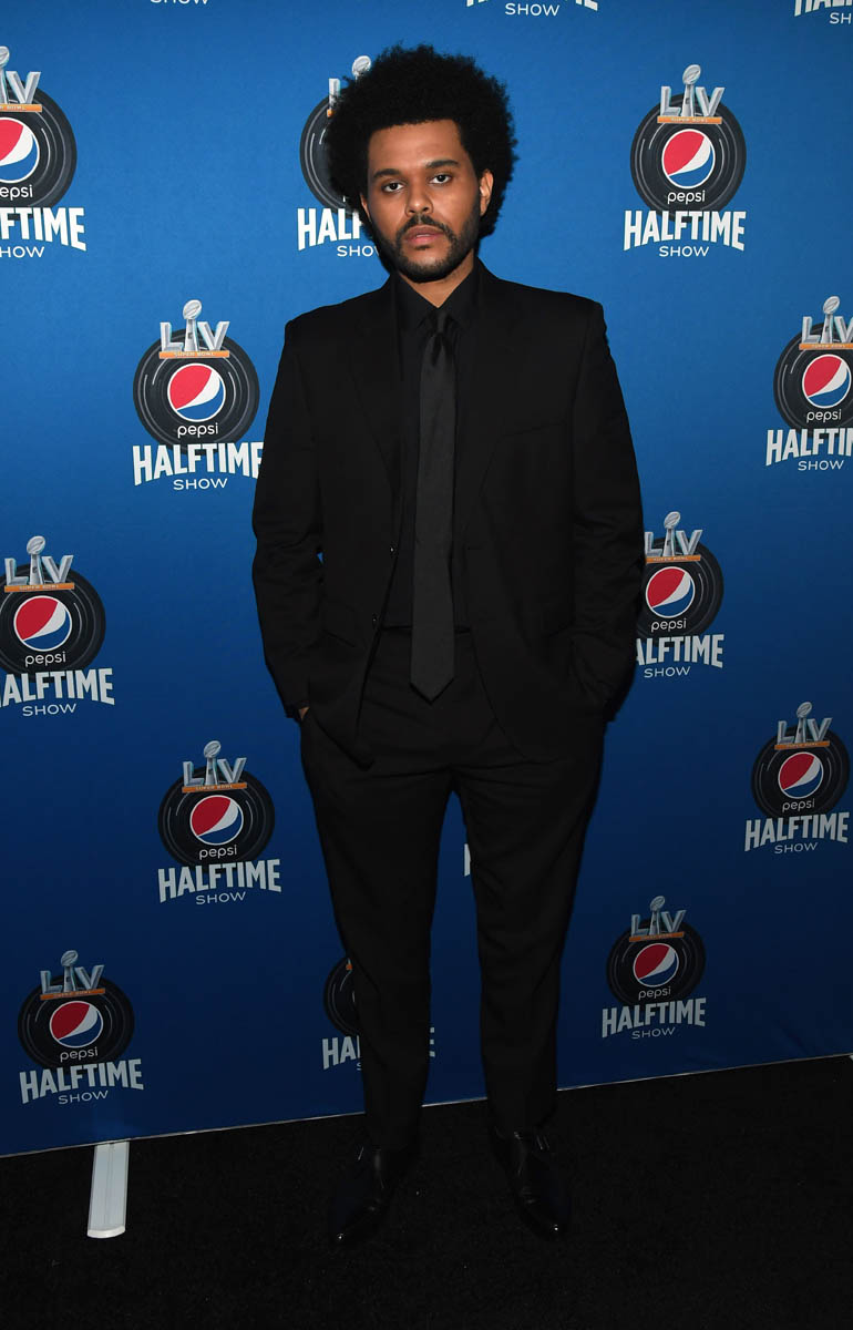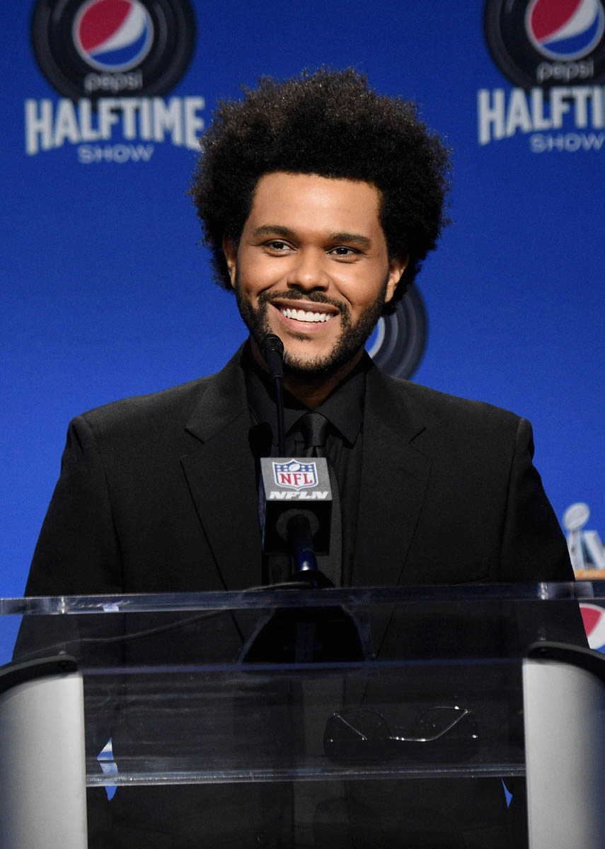 Because of the music, of course; The Weeknd’s After Hours has been one of the biggest albums of the last year, and he’s been one of the most successful artists of the last few years. But also because of how he’s been building up to this moment, the work he’s putting into this narrative. Earlier this week, in an exclusive interview with Variety, explained – sort of, because he may have also been “in character” for the interview – the storytelling that he’s been committed to for months and months and months; first with the bruises and other injuries on his face, and then the subsequent bandages on his face, and then the “new” face most recently, revealed through award show performances and music videos…all of which is not present in the Super Bowl teaser that was released a couple of weeks ago and which he was not wearing yesterday at the press conference.