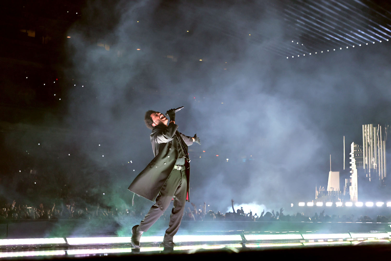 Attached - The Weeknd performing in New Jersey on Saturday.
