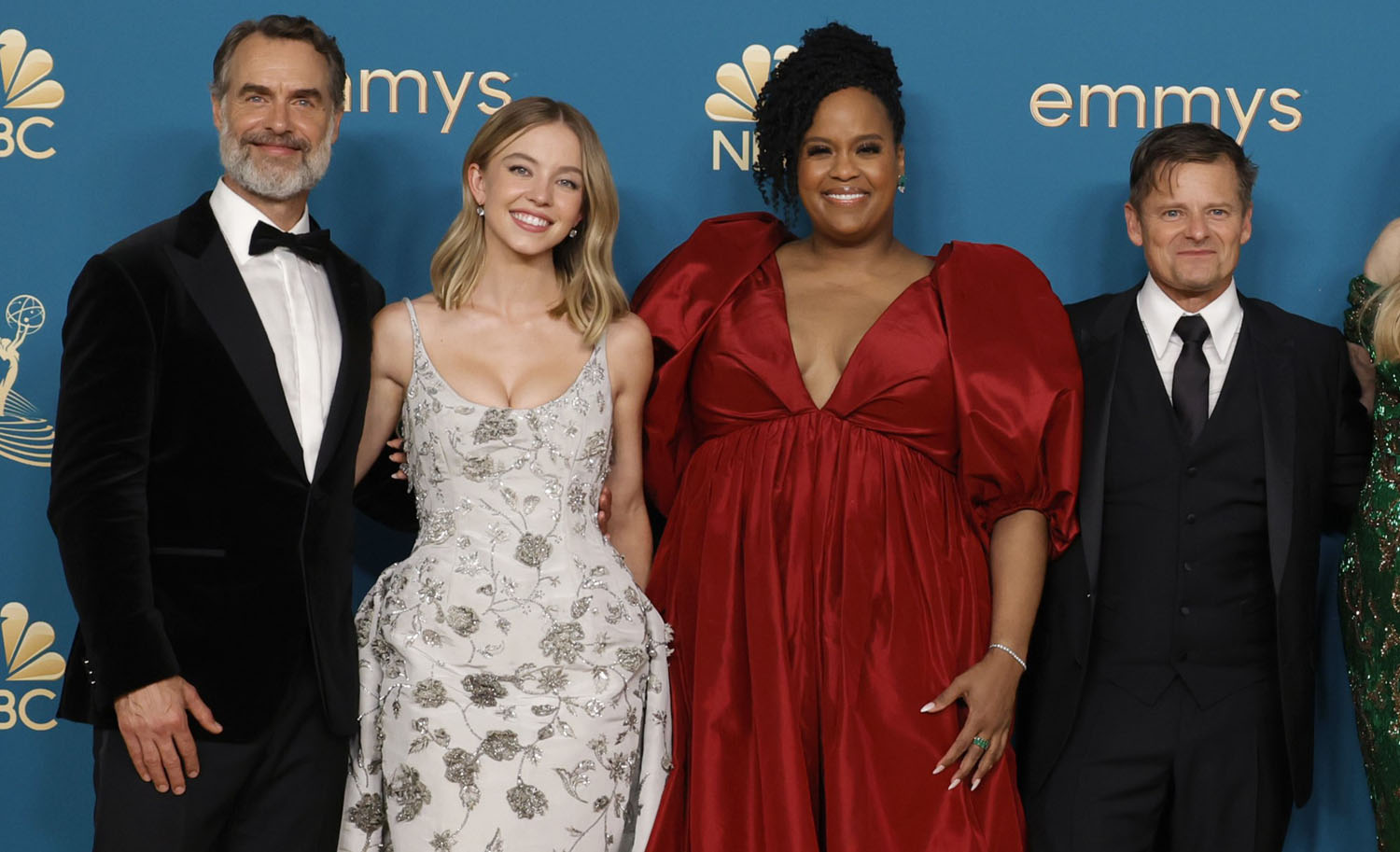 It’s good she went with the pink, though, because the entire jurisdiction of ‘red dress’ belonged to Natasha Rothwell, in what might rival Lizzo for the best red of the night. She looks incredibly happy in it, which is particularly good because she wound up being in almost every shot of the night from her chair at the White Lotus table: