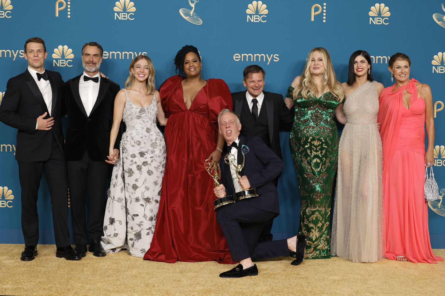 In another world, a situation where FIVE actresses from one show are nominated in the same category would almost certainly cancel them all out, but the show is The White Lotus and the winner was Jennifer Coolidge, and those two facts instead mean that The White Lotus, one of the night’s biggest winners, gets a bit of a fashion parade.