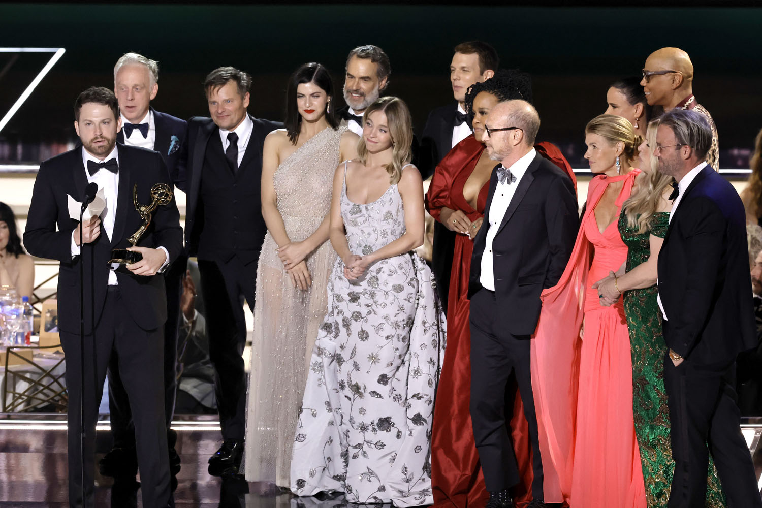 I love her speech, dance and all, and the only thing I’d change is her thinking that she had to rush and be flustered, that it was a once-in-a-lifetime thing, because I think she’ll be back. We’re so done with the polished and the practiced that someone who refuses to be played off is now everyone’s favourite – and since she’ll be back on The White Lotus Season II, in theory she’ll have another chance to be back here to defend her title of, if not best speech of the night, definitely the funniest.