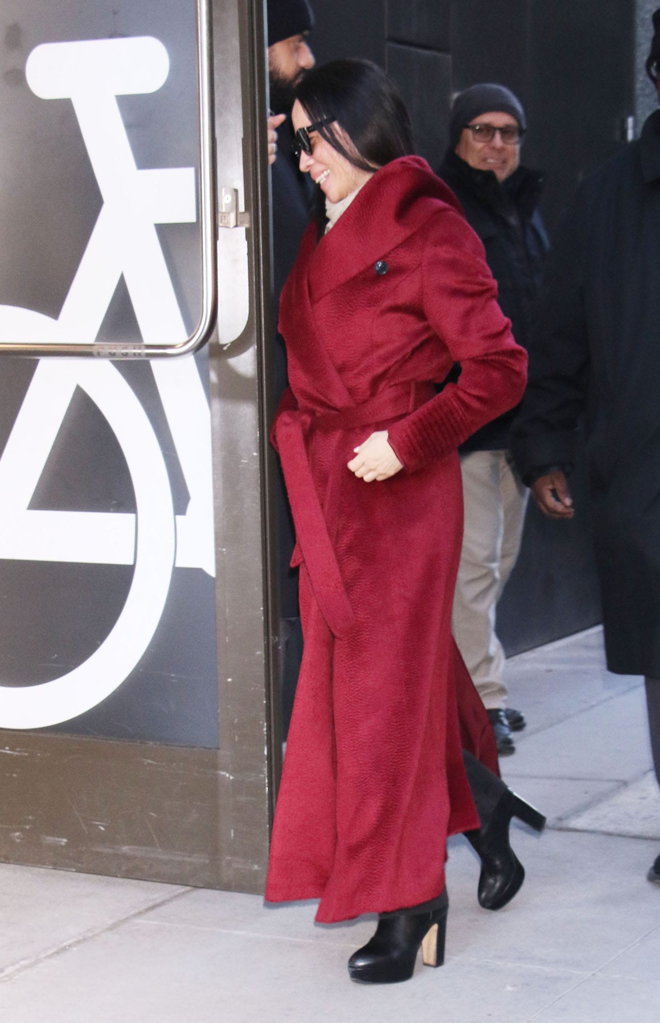 The way it looks like a robe…with a hood! The ribbing cuff on the sleeves! This is the best wrap red coat on the market right now, and it’s Canadian. The brand is called SENTALER and if that sounds familiar it’s because Meghan Sussex has worn several coats from the label. Lucy’s is called the Suri Alpaca Maxi Hooded Wrap – and it is pricey but it’s also pretty f-cking special.