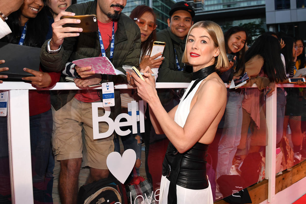 Radioactive closed TIFF on Saturday and is, for the most part, a conventional biopic. The film covers a roughly forty-year period, from Marie Skłodowska’s days as a struggling scientist, evicted from her laboratory space by the uptight science bros of the Sorbonne, to her newlywed phase as the wife of fellow scientist Pierre Curie (Sam Riley), to her rise as one of the leading scientists of the age, to her slow decline and eventual death thanks to the effects of prolonged exposure to radioactive materials. But part of Radioactive is also a horror movie because THEY KEEP TOUCHING THE F-CKING RADIUM. Of course we know, now, how poisonous these elements are, but Marie and Pierre have no clue, and they stand in actual piles of Uranium ore and Marie insists on carrying a vial of Radium everywhere she goes and they just won’t STOP TOUCHING IT. Both Pierre and Marie develop persistent coughs, shocking no one.