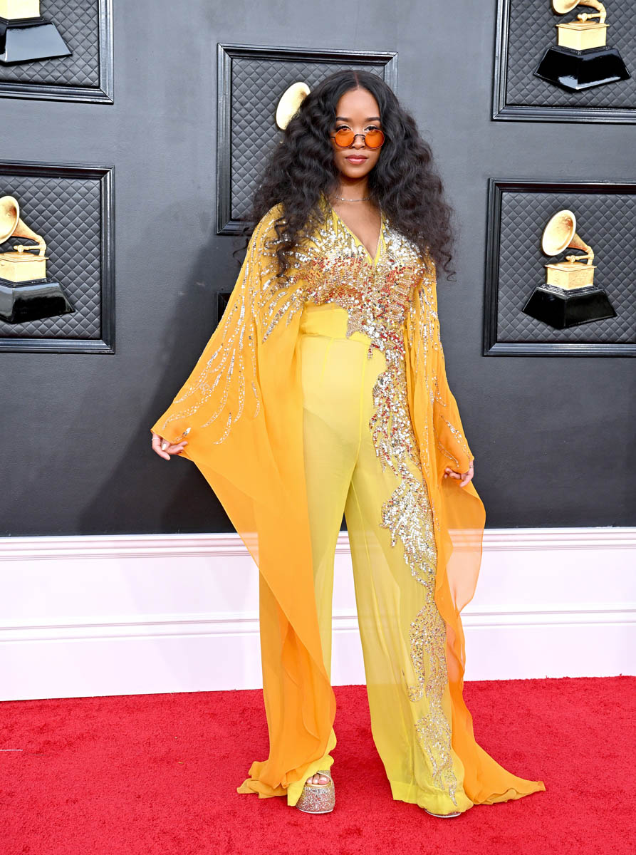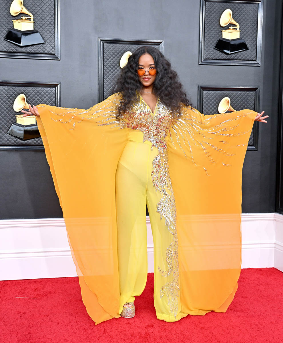 H.E.R., who was a winner last night, arrived on the red carpet in a kaftan-with-pants ensemble and it feels really casual for the evening. Remember when the Grammys used to be the Oscars of Music? This look is better suited for a stage performance somewhere else on the Vegas strip.