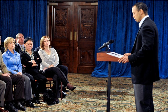 What stood out most throughout this process including today, however, is that ultimately Tiger’s greatest loyalties are to his sponsors (after himself). So it’s not surprising that he took time to address them too in front of what was a gathering of friends and family. And it’s no coincidence that the conference came at the start of the Accenture. Reporters will flock to the course, ask all the players for reaction, speculate on a return date, boost Golf Channel ratings, and so on.
